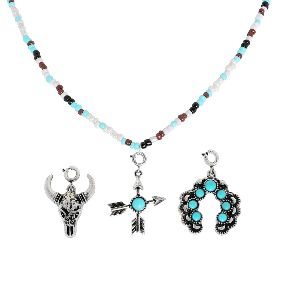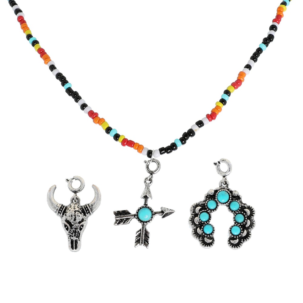 4-PIECE BEAD MIX BEADED ADJUSTABLE NECKLACE SET WITH 3 INTERCHANGEABLE PENDANTS