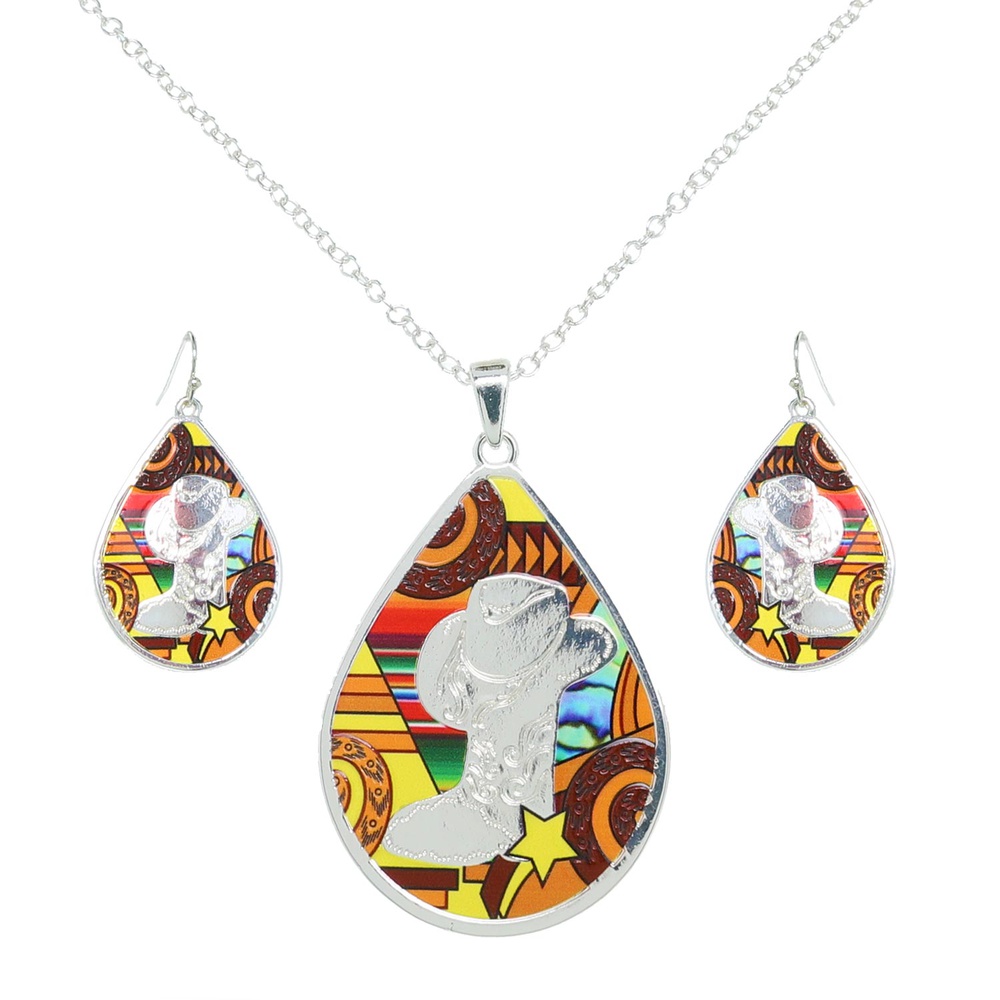 Western Lucky Star Rodeo Teardrop Necklace Set