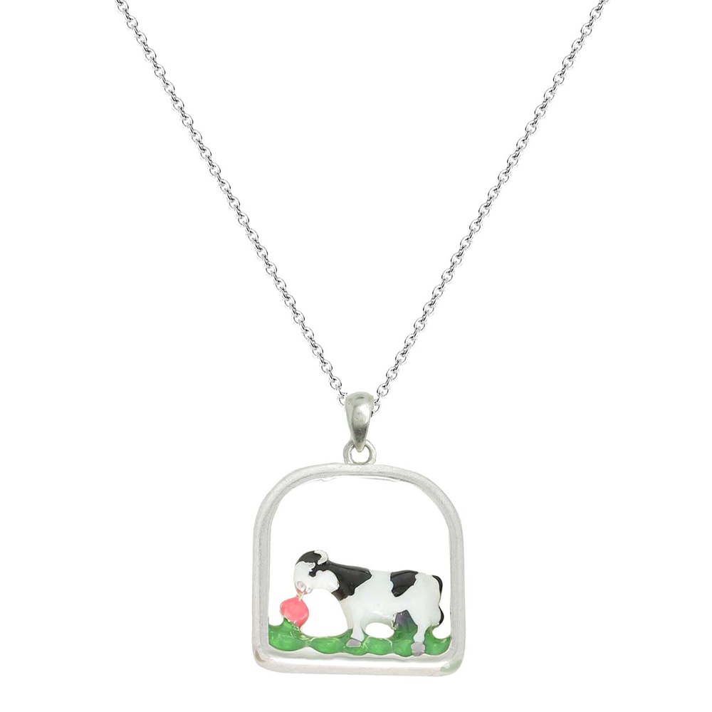 DAIRY COW FARM ANIMAL ADJUSTABLE ENAMEL COATED OPEN ARCH PENDANT CHAIN NECKLACE