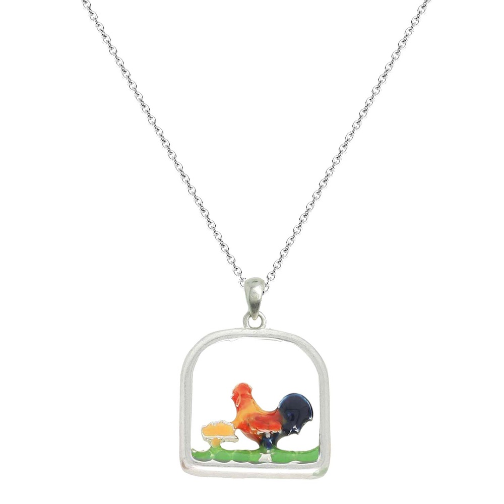 ROOSTER FARM ANIMAL ADJUSTABLE ENAMEL COATED OPEN ARCH PENDANT CHAIN NECKLACE