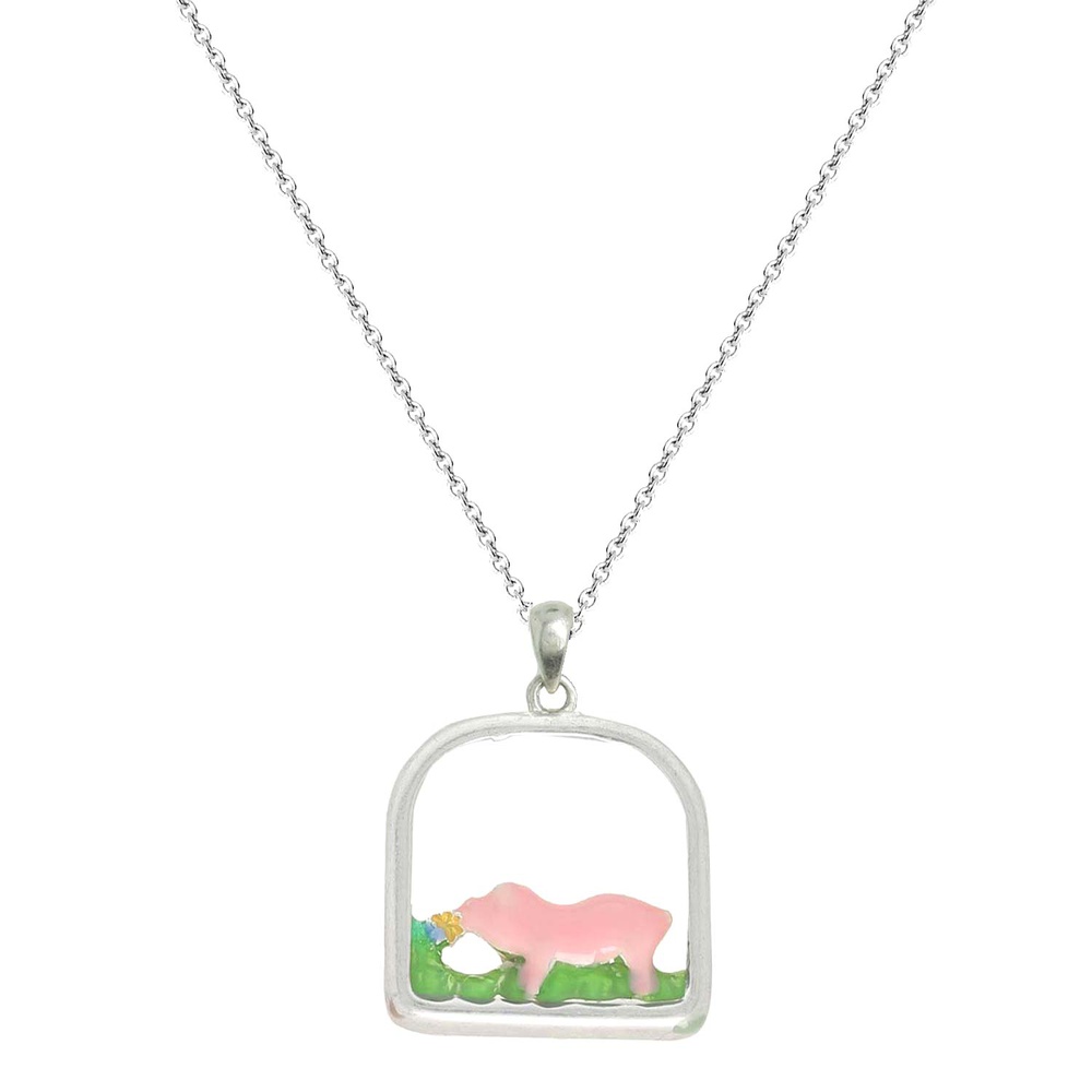 PINK PIG FARM ANIMAL ADJUSTABLE ENAMEL COATED OPEN ARCH PENDANT CHAIN NECKLACE