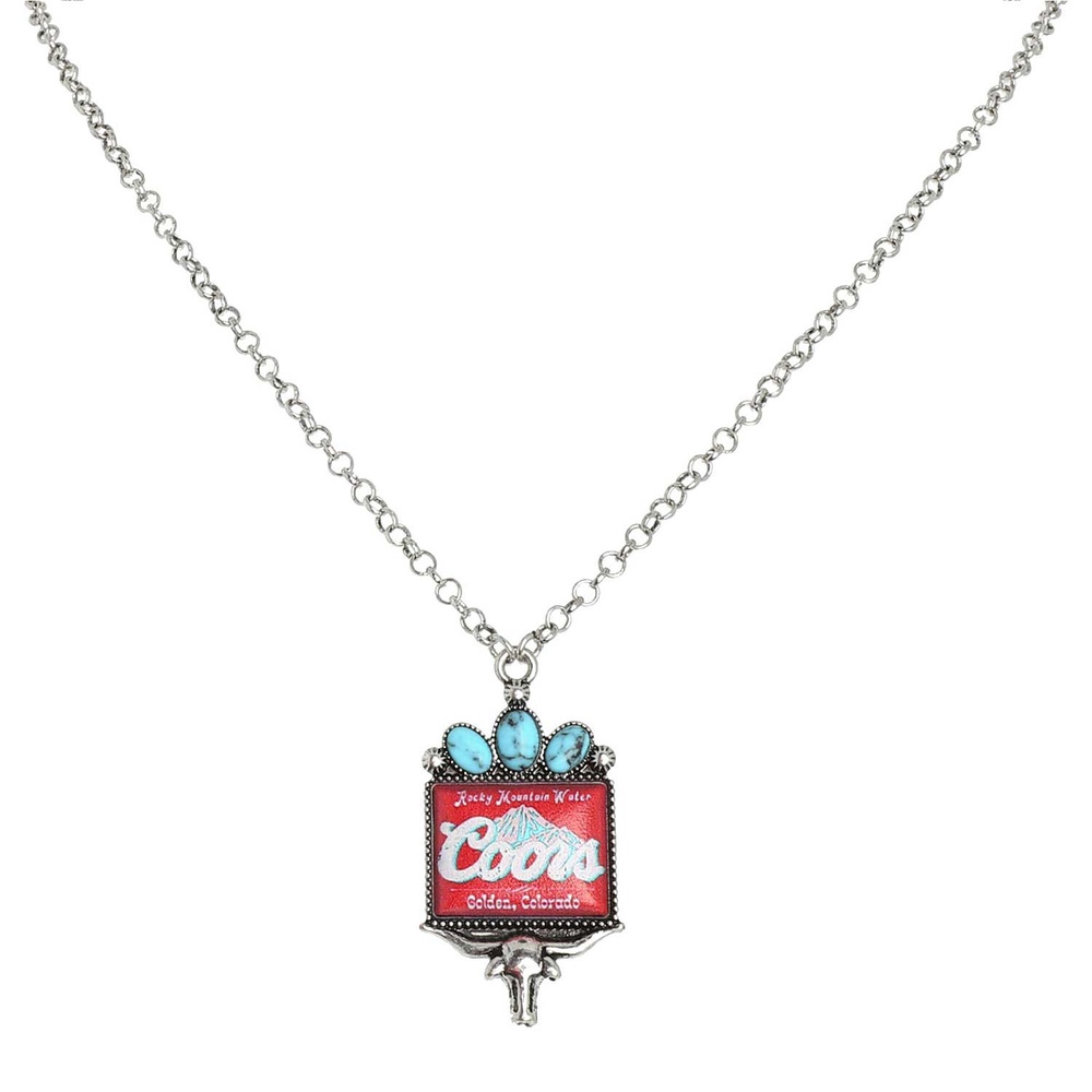 WESTERN TURQUOISE ENAMEL COATED LONGHORN COORS ROCKY MOUNTAIN WATER GOLDEN COLORADO ADJUSTABLE PENDANT NECKLACE