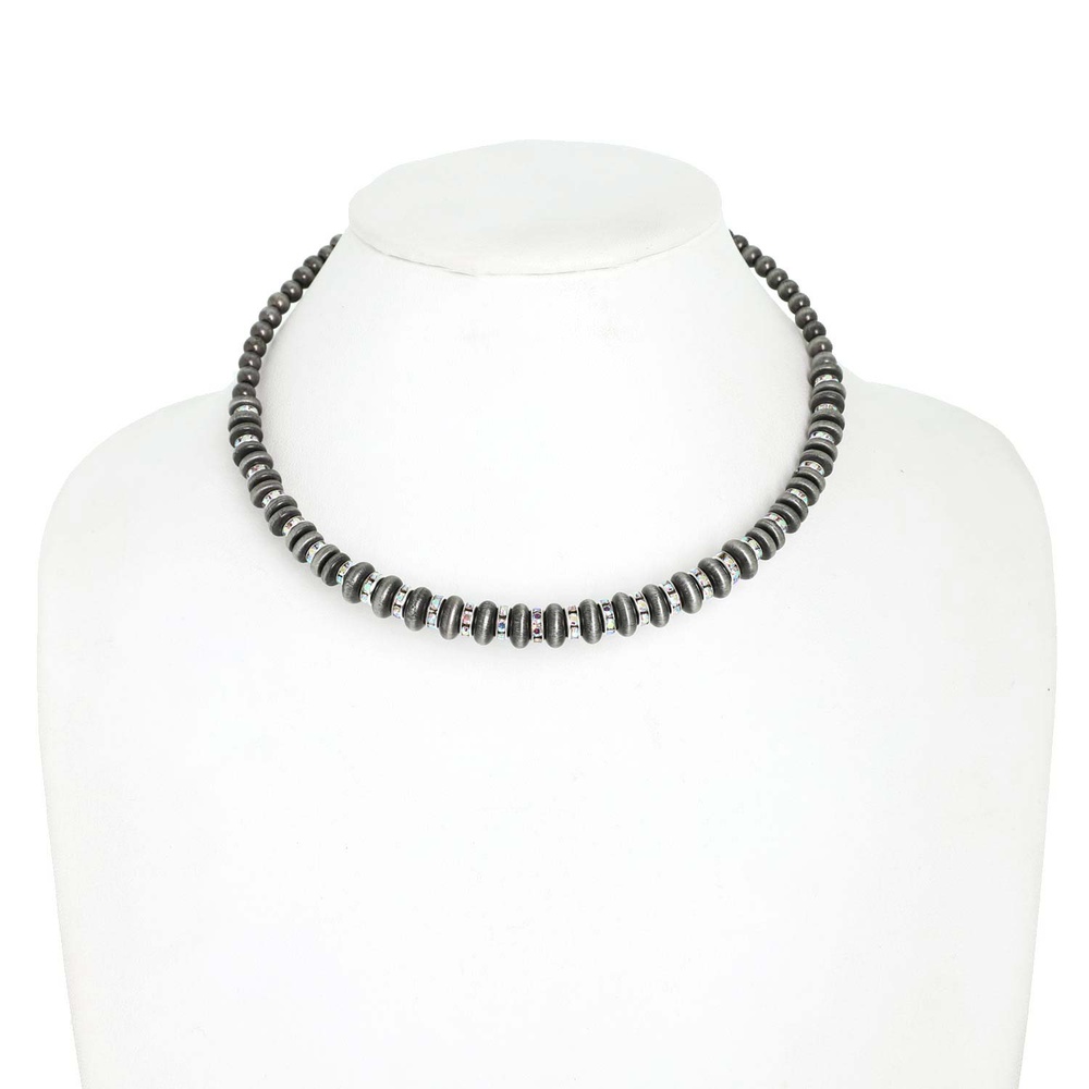 16" WESTERN NAVAJO PEARL BEADED AB CRYSTAL RHINESTONE ADJUSTABLE COLLAR NECKLACE