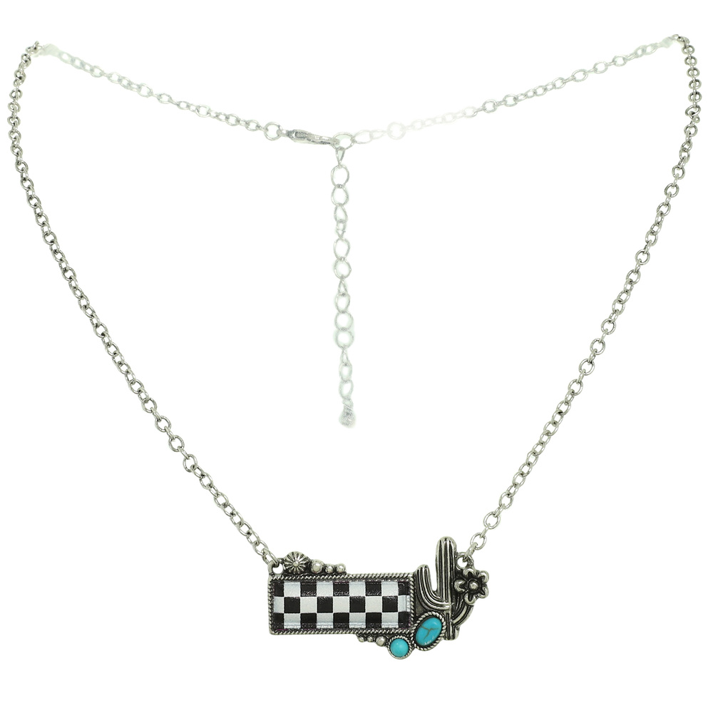 TURQUIOSE CHECKER PATTERN CACTUS PENDANT NECKLACE