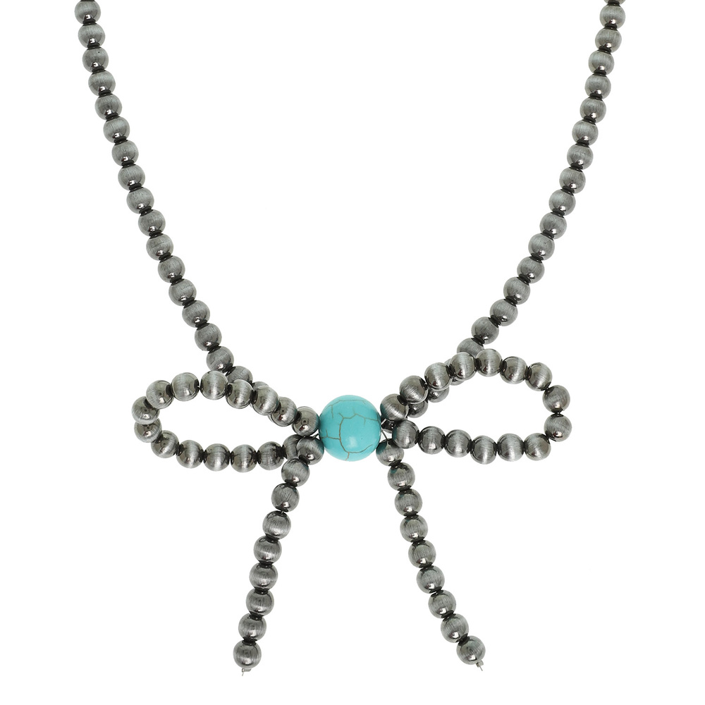 WESTERN TURQUOISE SPHERE BOW KNOT PENDANT PEARL BEAD NECKLACE