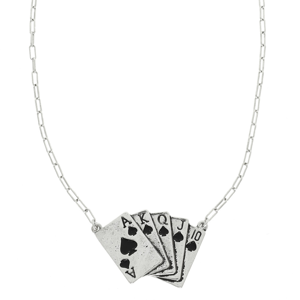 ACE OF SPADES ROYAL FLUSH PENDANT NECKLACE IN SILVER-TONE METAL