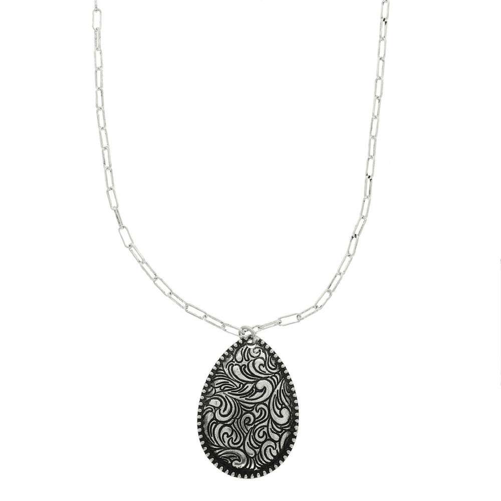 Western Filigree Etched Teardrop Necklace