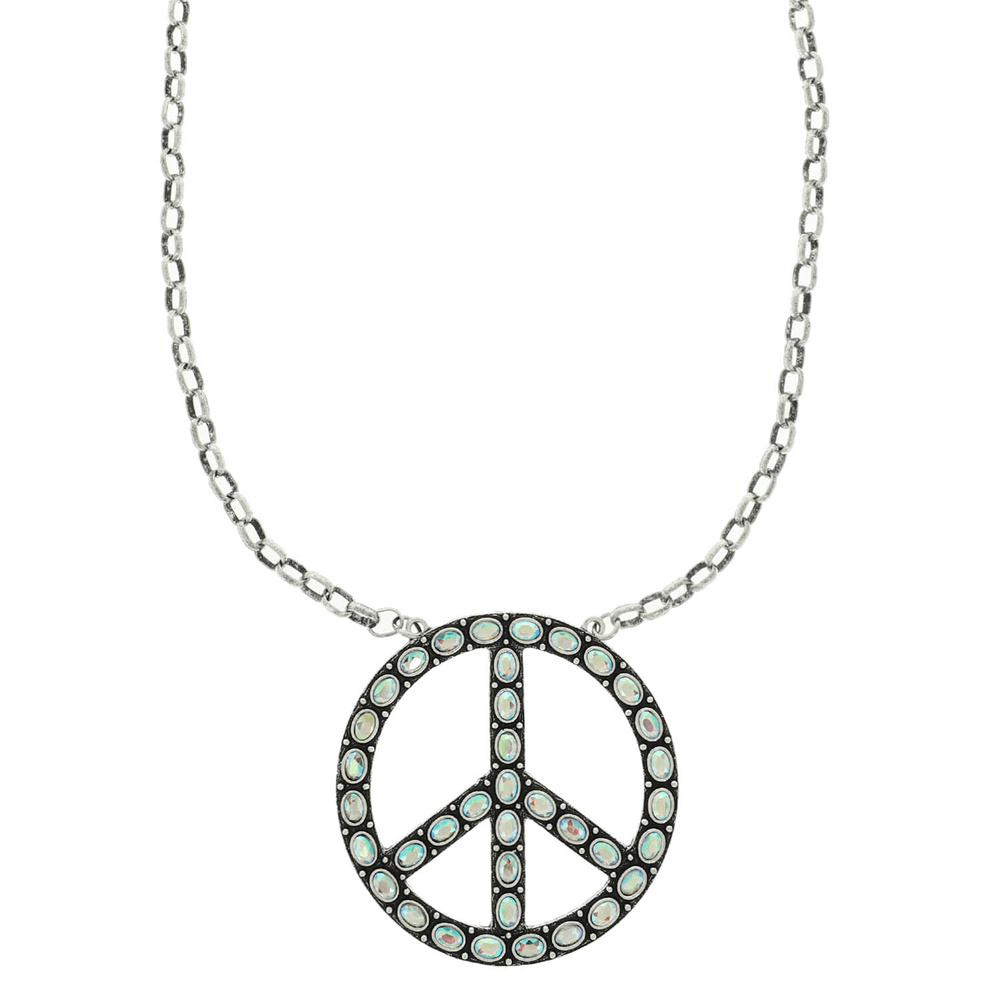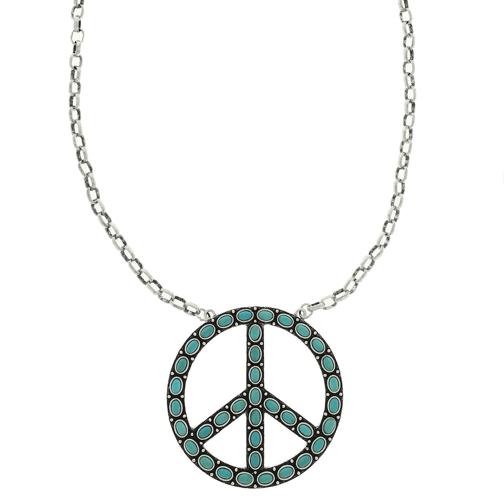 PEACE SIGN PENDANT NECKLACE WITH TURQUOISE IN OXIDIZED SILVER TONE METAL