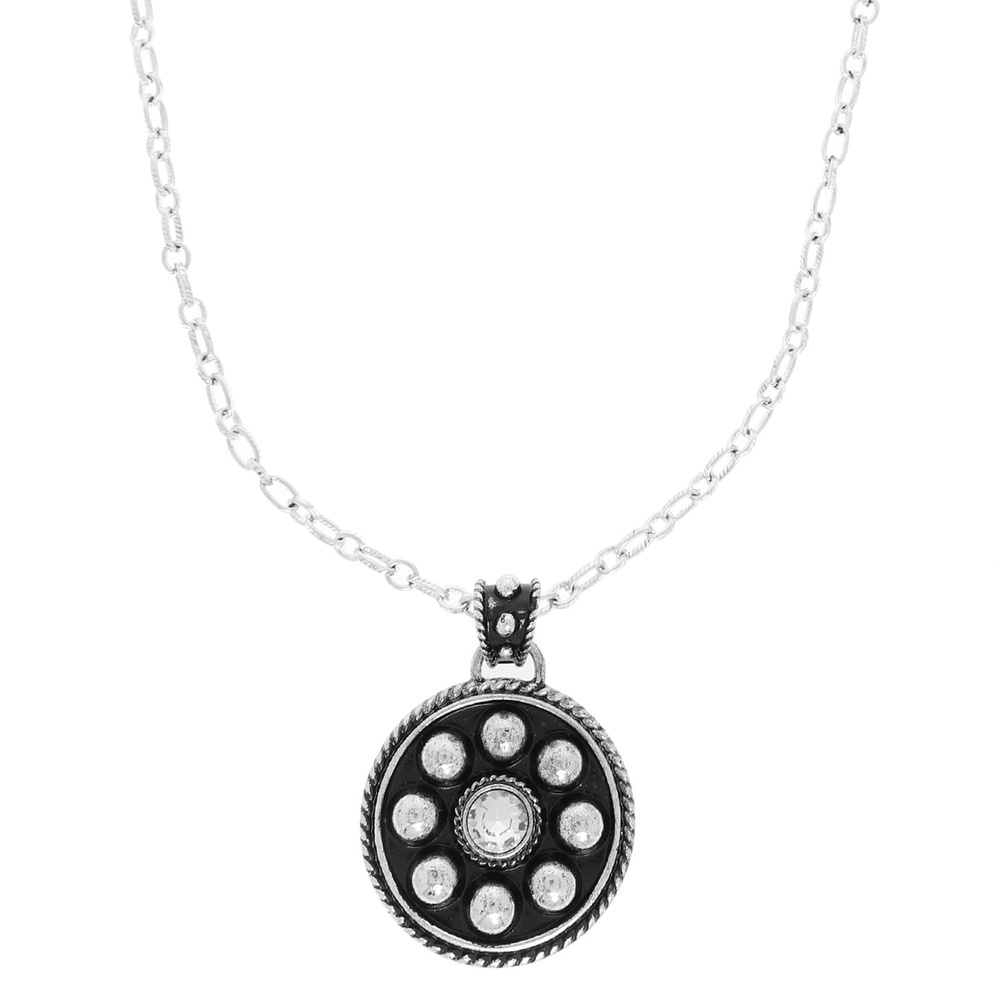 WESTERN BEZEL-SET CRYSTAL BUBBLE PENDANT NECKLACE IN OXIDIZED SILVER-TONE METAL