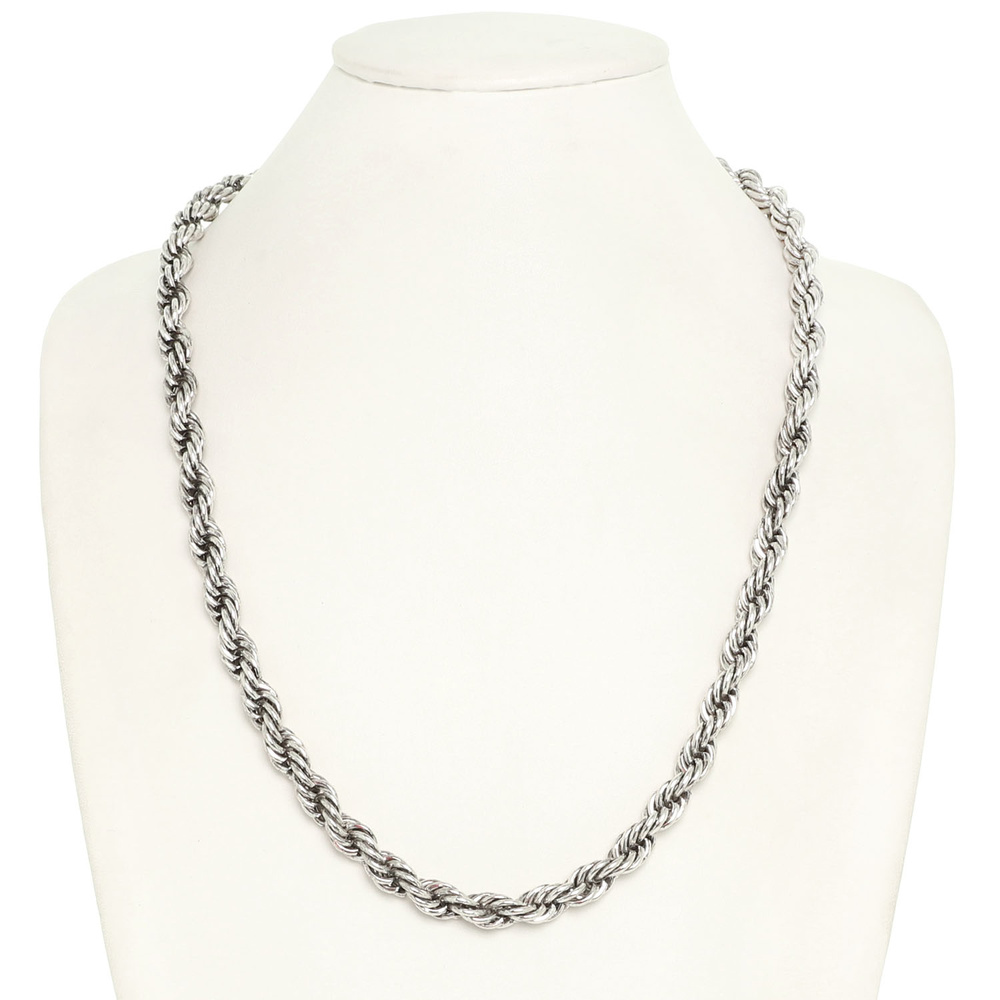 WESTERN MATINEE LENGTH CHUNKY ROPE CHAIN NECKLACE IN OXIDIZED SILVER TONE METAL