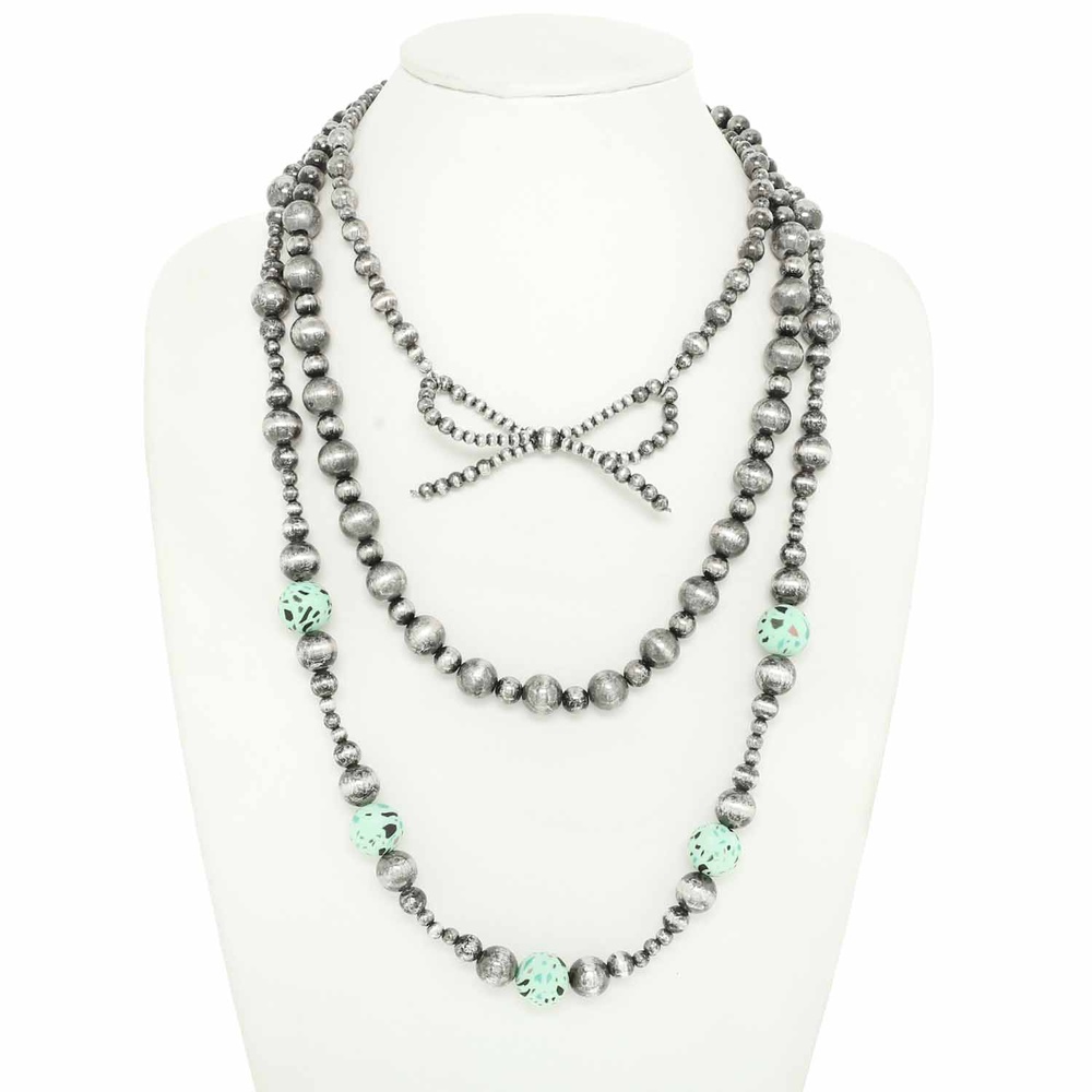 WESTERN MULTI STRAND MULTI-COLORED BEADED NECKLACE WITH BOW CHARM