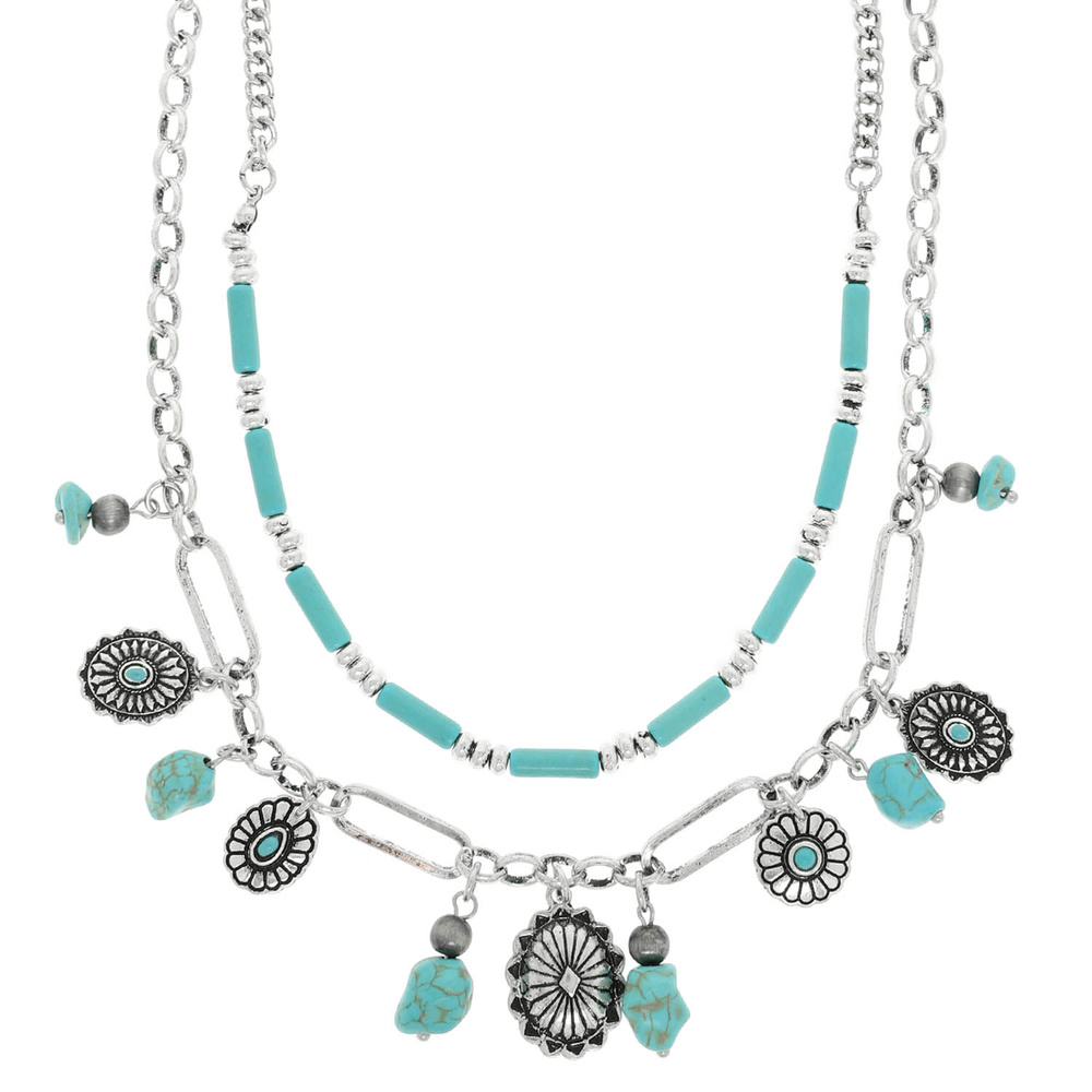 WESTERN THEME MULTI-STRAND TURQUOISE NECKALCE
