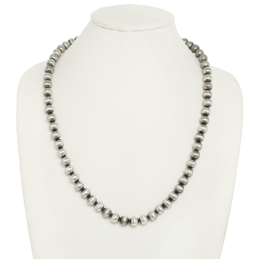 WESTERN BALL BEAD MATINEE TO OPERA LENGTH NECKLACE IN OXIDIZED SILVER TONE METAL