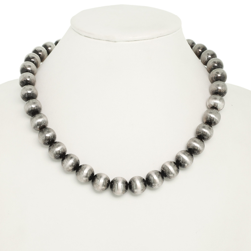 WESTERN BALL BEADED PRINCESS TO MATINEE LENGTH NECKLACE IN OXIDIZED SILVER TONE METAL