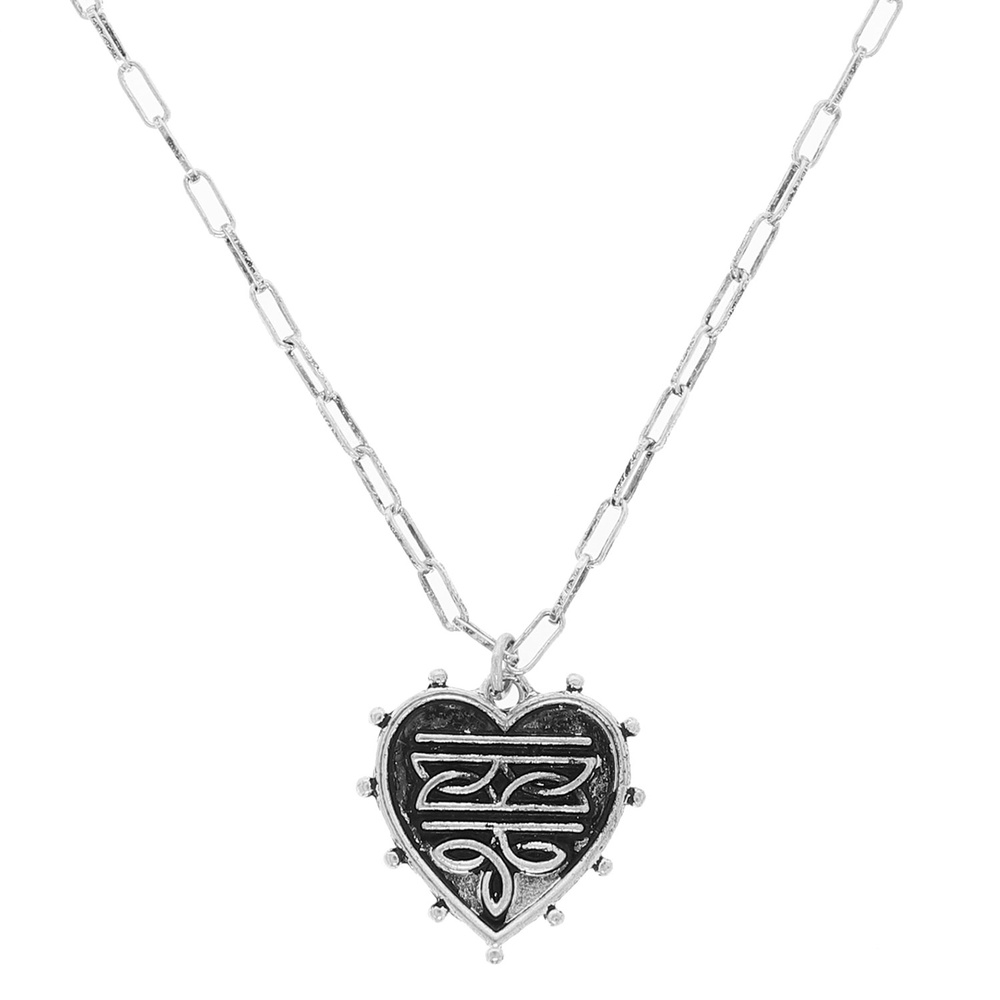 WESTERN BOOT STITCH HEART PENDANT NECKLACE IN OXIDIZED SILVER TONE METAL