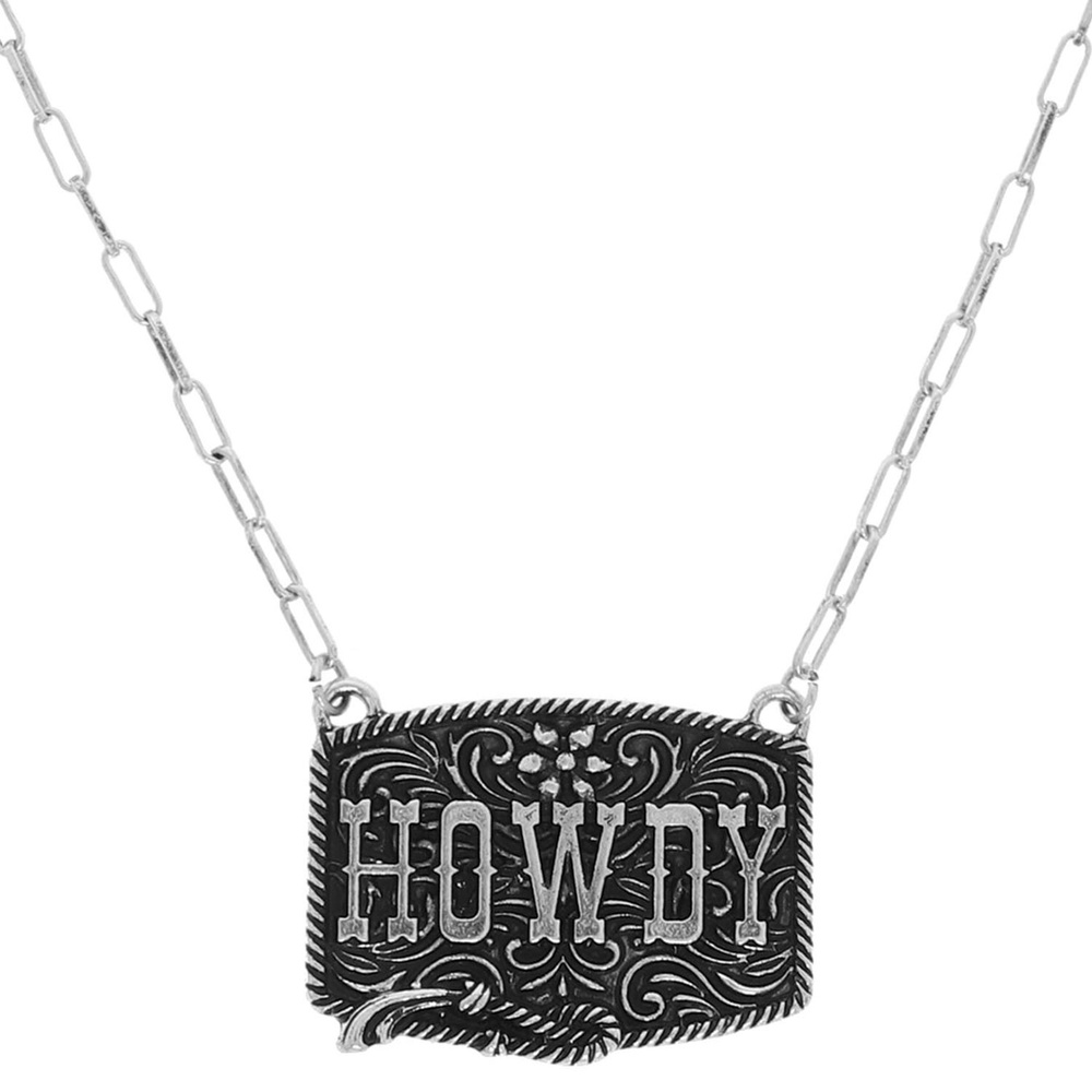 WESTERN HOWDY LETTER PLATE NECKLACE WITH TOOLED DETAIL
