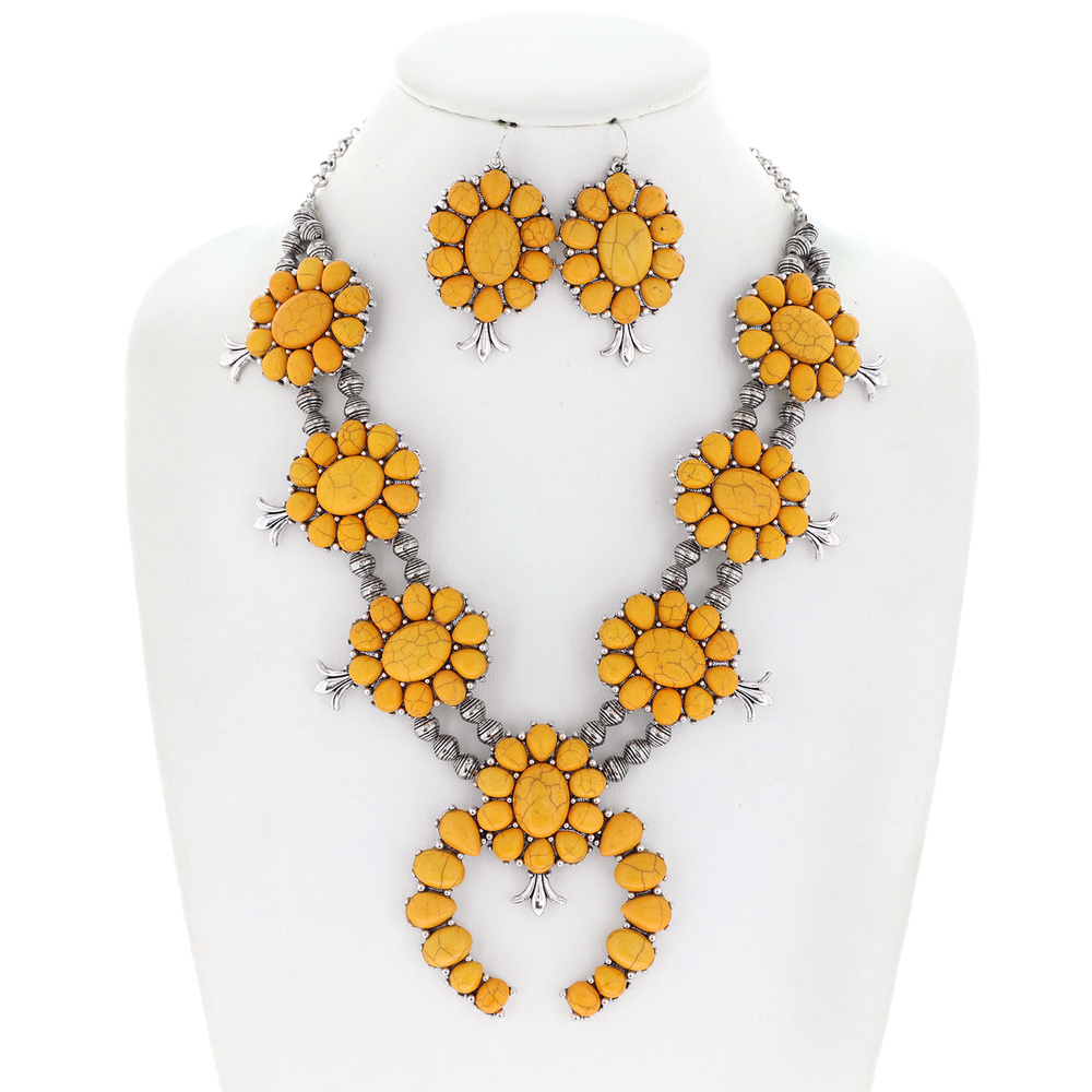 Native American Statement Navajo Pearl Squash Blossom Necklace Earring Set