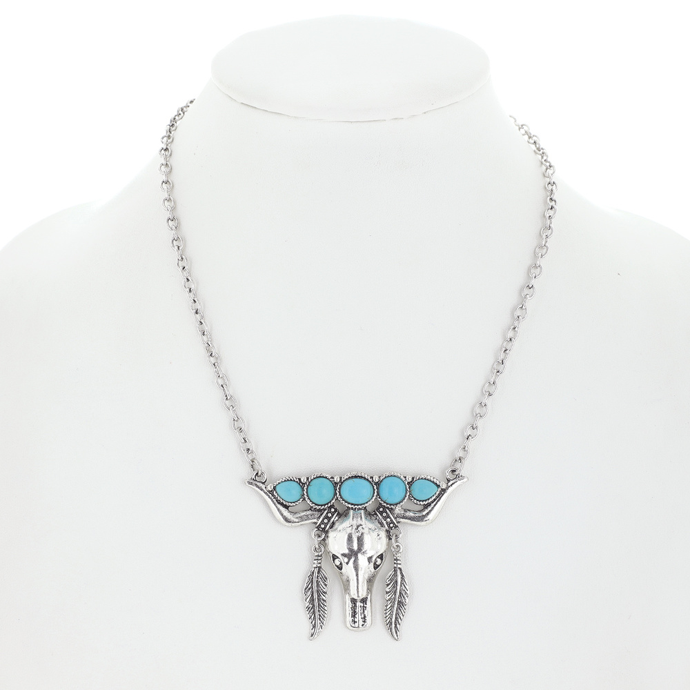 WESTERN STYLE STEER SKULL PENDANT NECKLACE