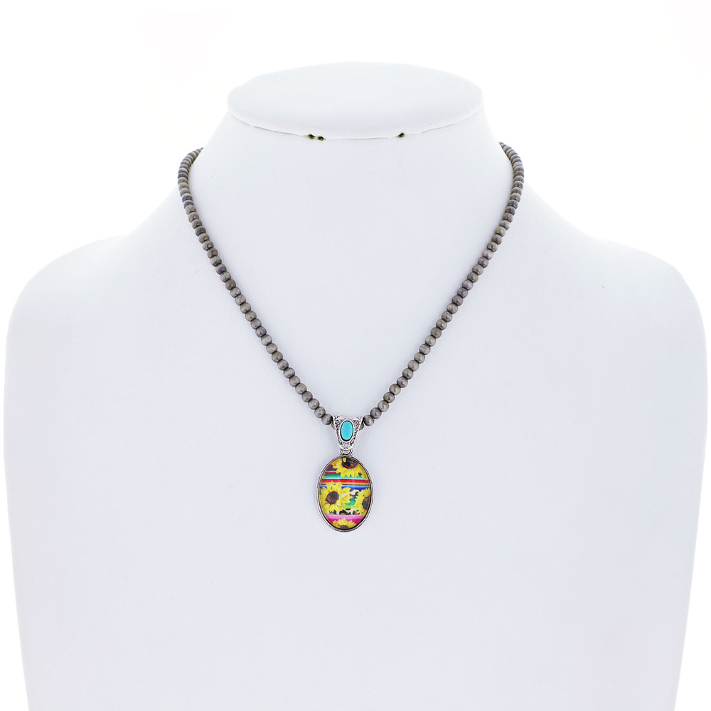 Sunflower-western Navajo Pearl Resin Pendant Necklace