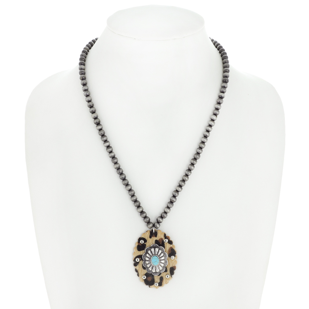 Western Navajo Perl Turquoise Leopard Printed Concho Pendant Necklace