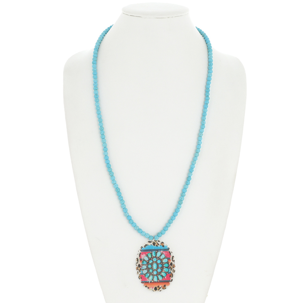 SQUASH BLOSSOM WESTERN PRINT WOODEN HOWLITE BEADED NECKLACE