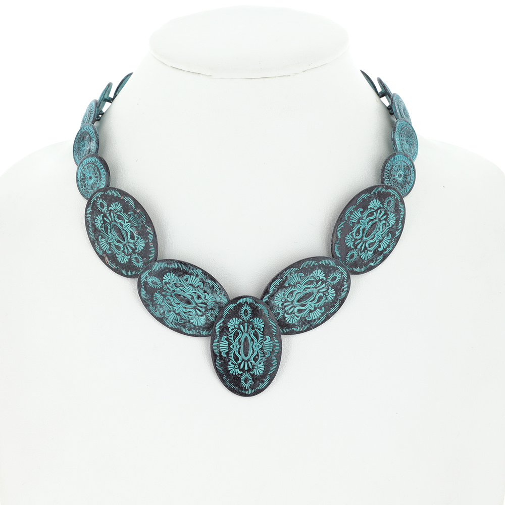 Oxidized Stamped Metal Adjustable Concho Necklace- Southwestern Jewelry