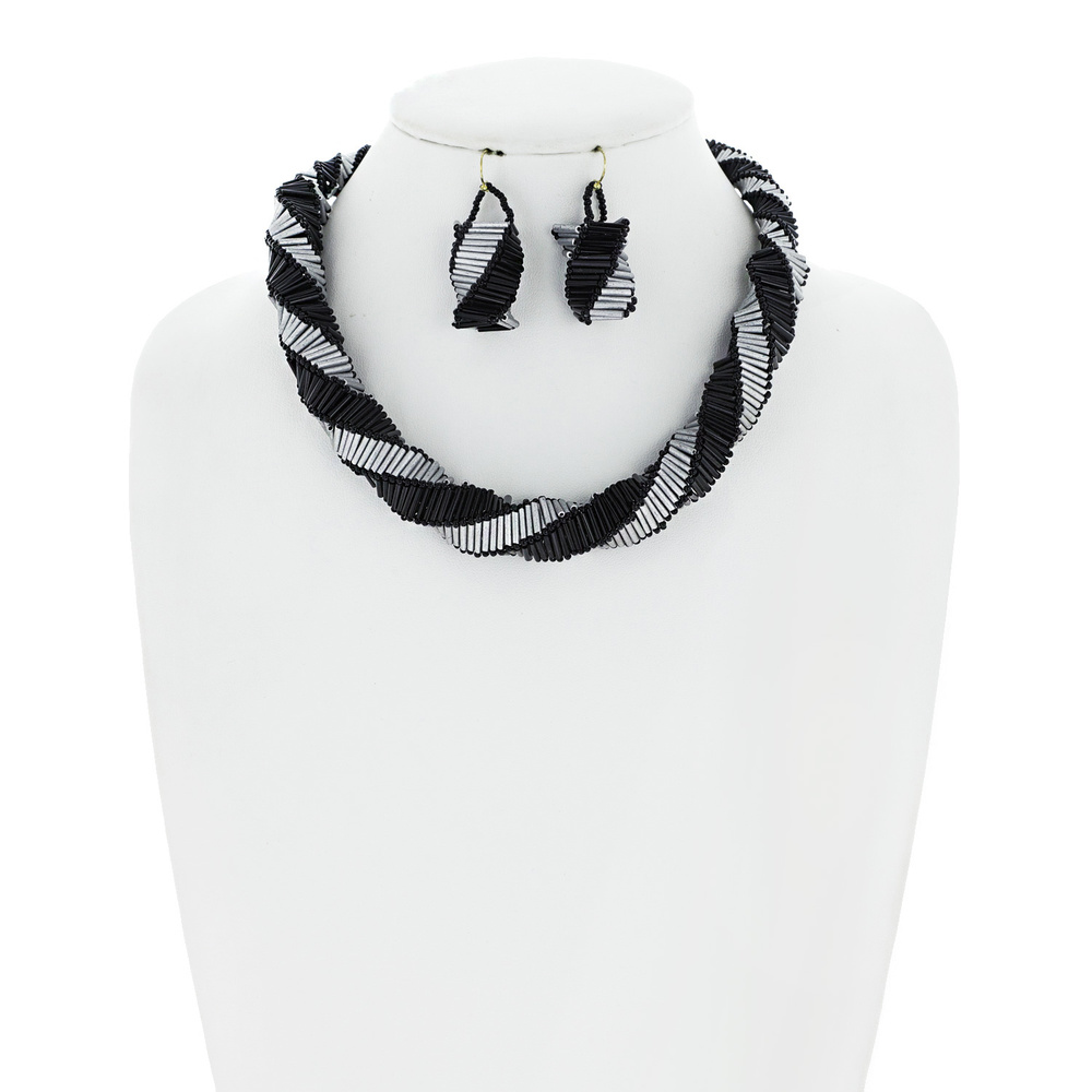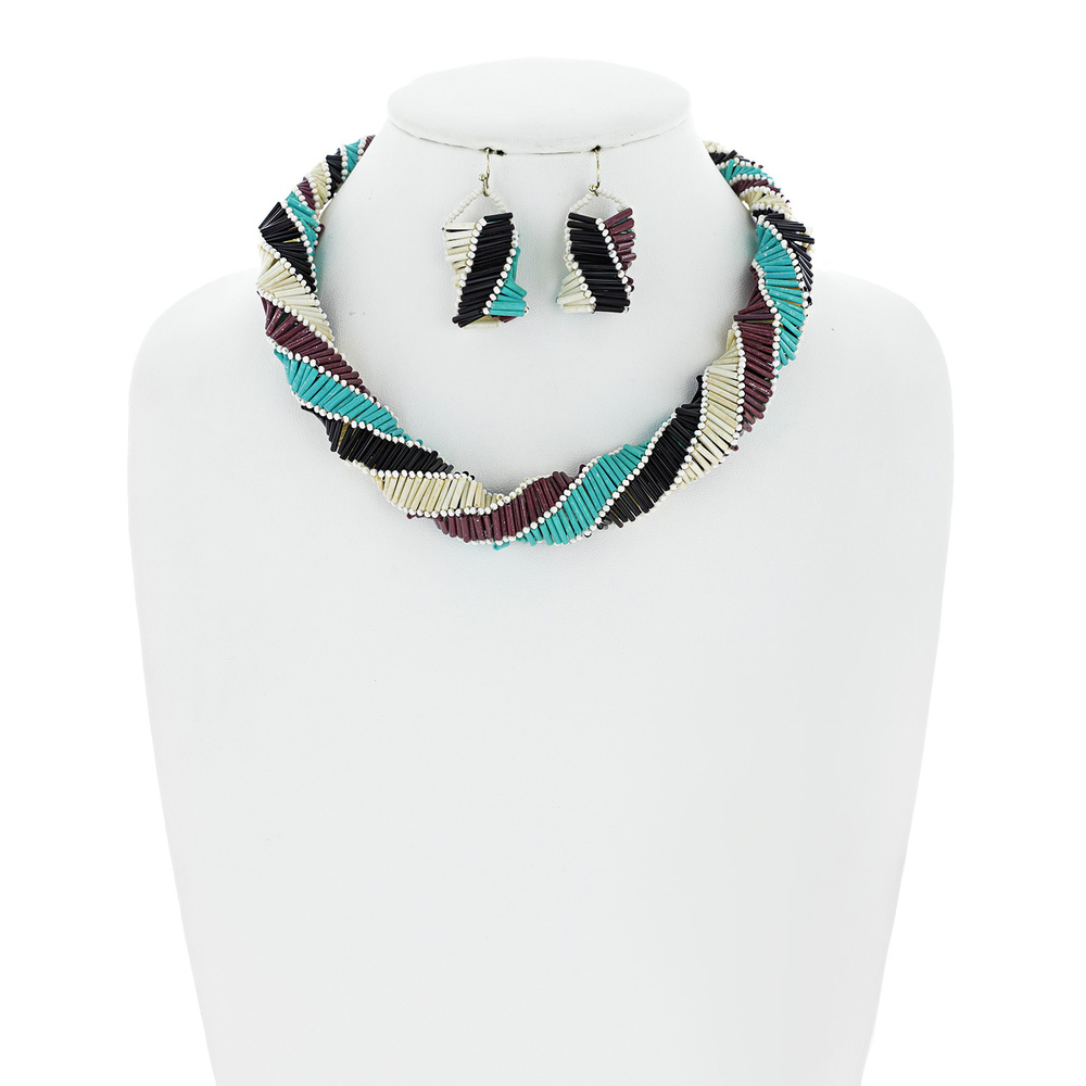 BOHO MULTICOLOR SPIRAL BEADED NECKLACE EARRINGS SET