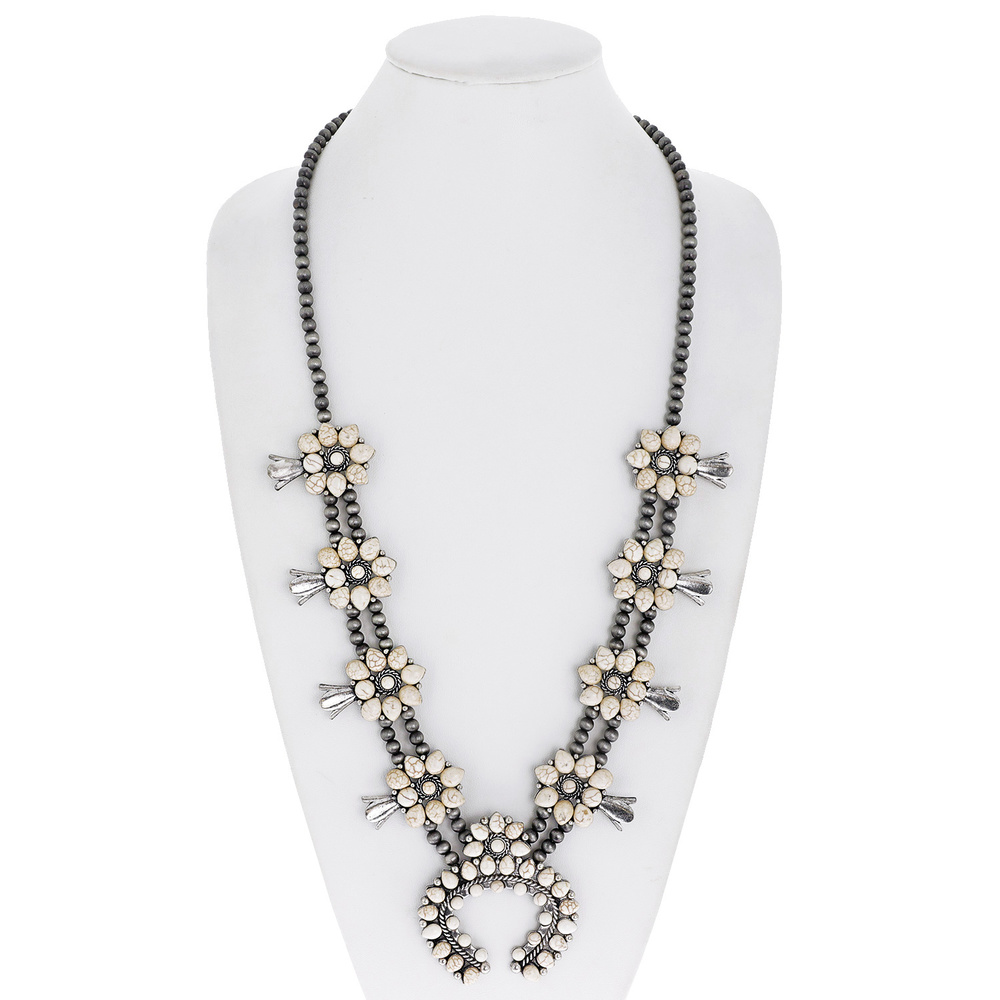 WESTERN NAVAJO BEADED TURQUOISE SYNTHETIC SEMI STONE SQUASH BLOSSOM ADJUSTABLE NECKLACE
