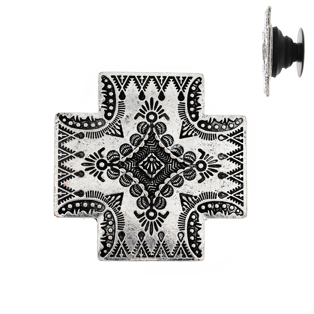 CROSS- WESTERN THEMED METAL POP SOCKET PHONE GRIP AND STAND