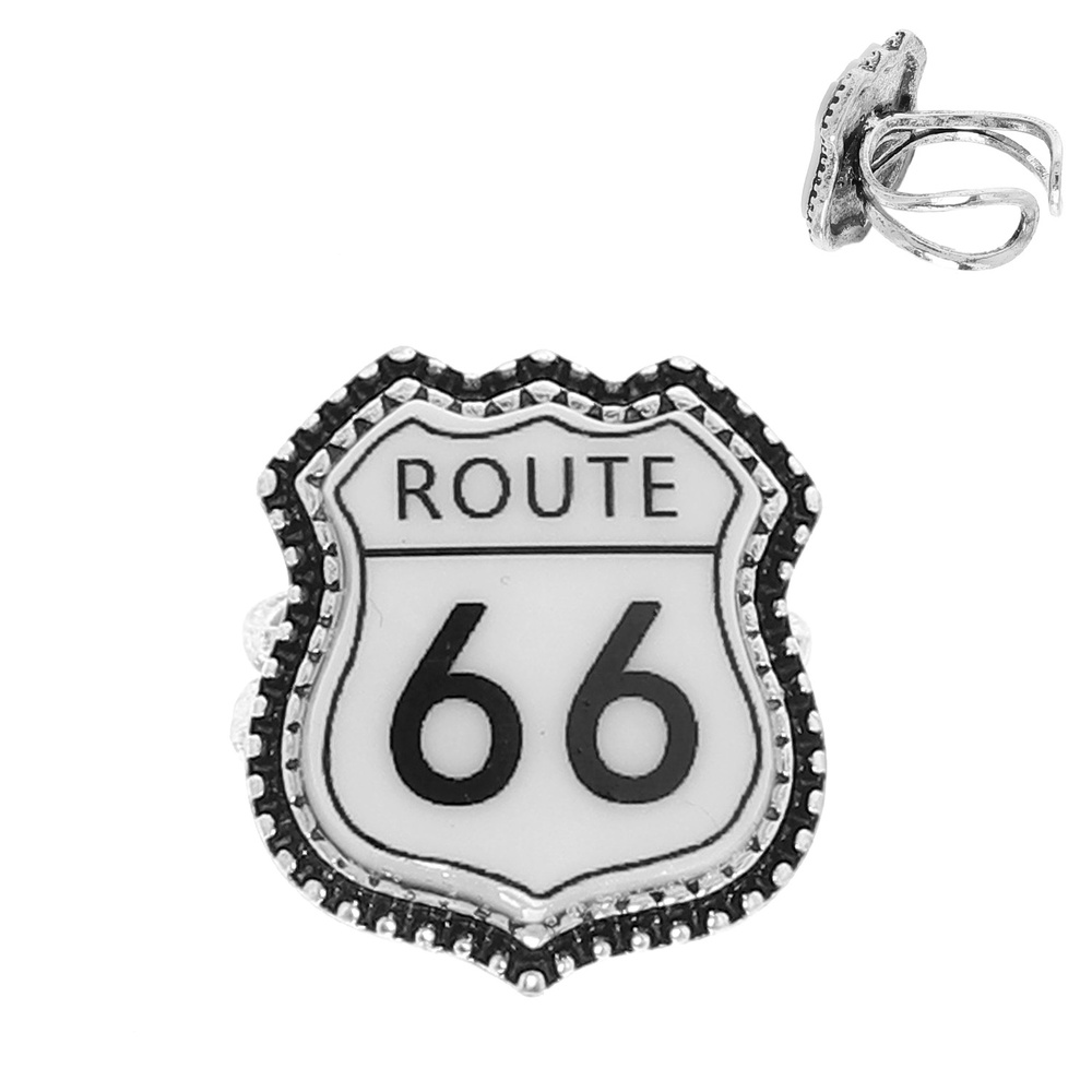 WESTERN ROUTE 66 SIGN CUFF RING IN OXIDIZED SILVER-TONE METAL