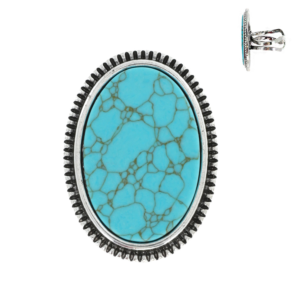 TURQUOISE SEMI STONE OVAL ADJUSTABLE WESTERN RING