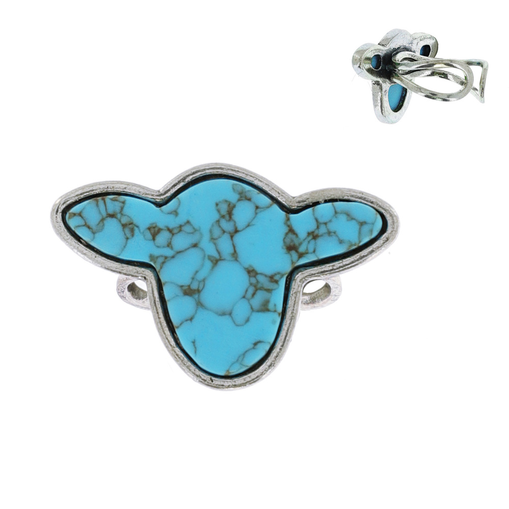 COWHIDE/ SYNTHETIC TURQUOISE -WESTERN COW HEAD SHAPED ADJUSTABLE CUFF RING