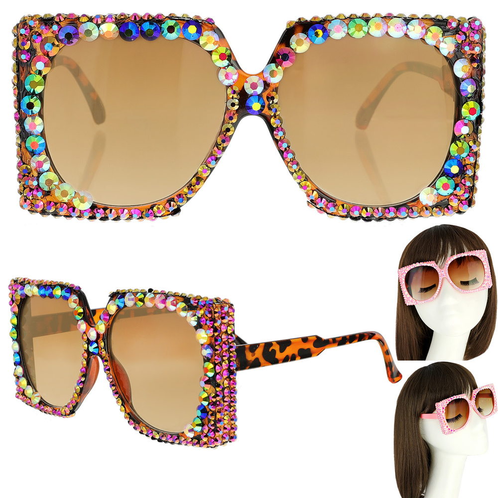 SPARKLING RHINESTONE SQUARE FRAME SUNGLASSES