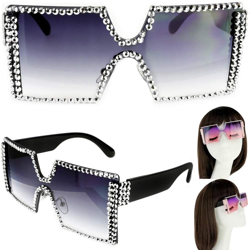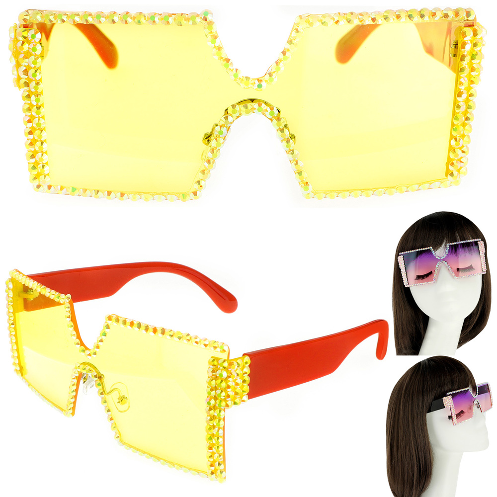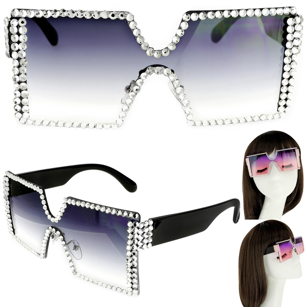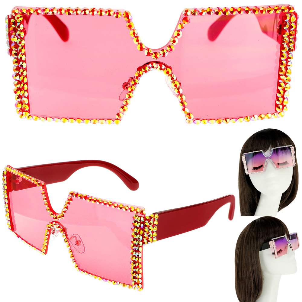 SPARKING RHINESTONE RECTANGLE SUNGLASSES