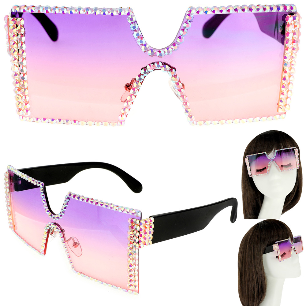 SPARKING RHINESTONE RECTANGLE SUNGLASSES