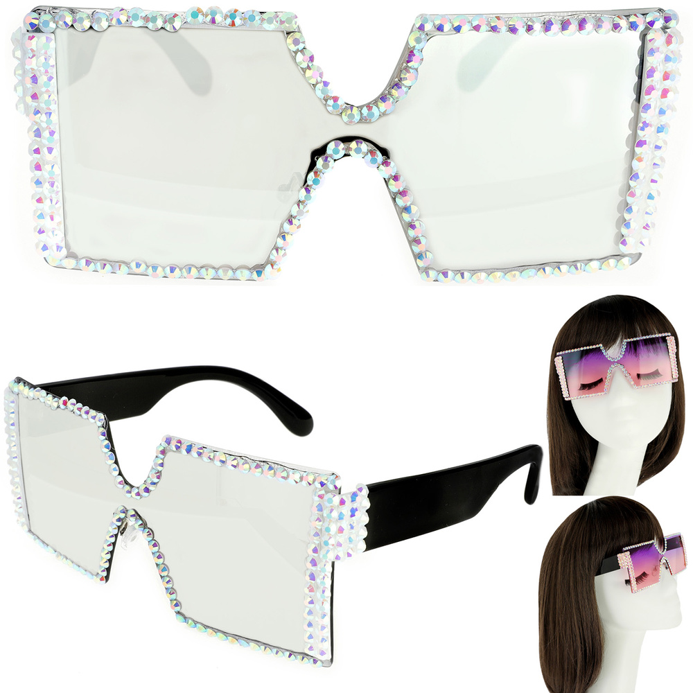 SPARKING RHINESTONE RECTANGLE SUNGLASSES