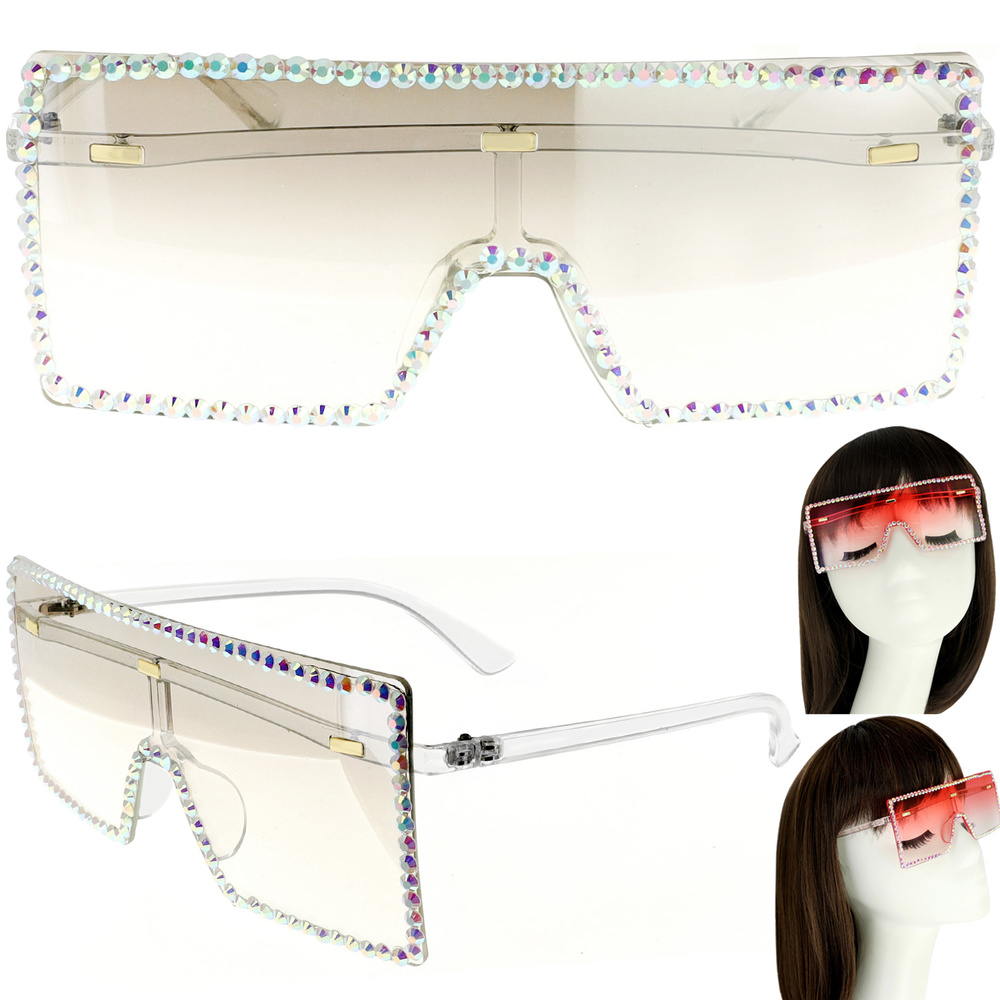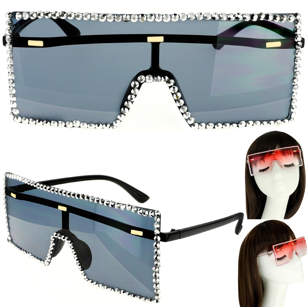 SPARKING RHINESTONE RECTANGLE SUNGLASSES