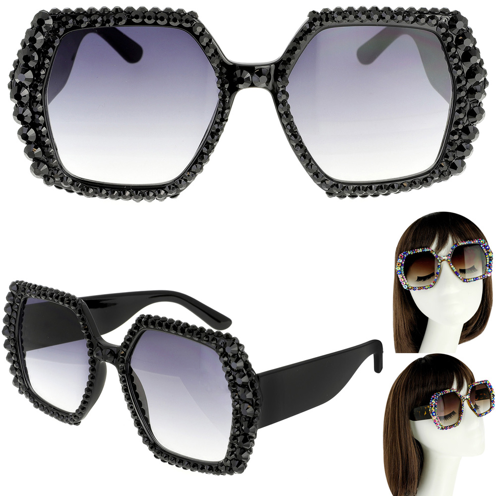 SPARKING RHINESTONE HEXAGON SUNGLASSES