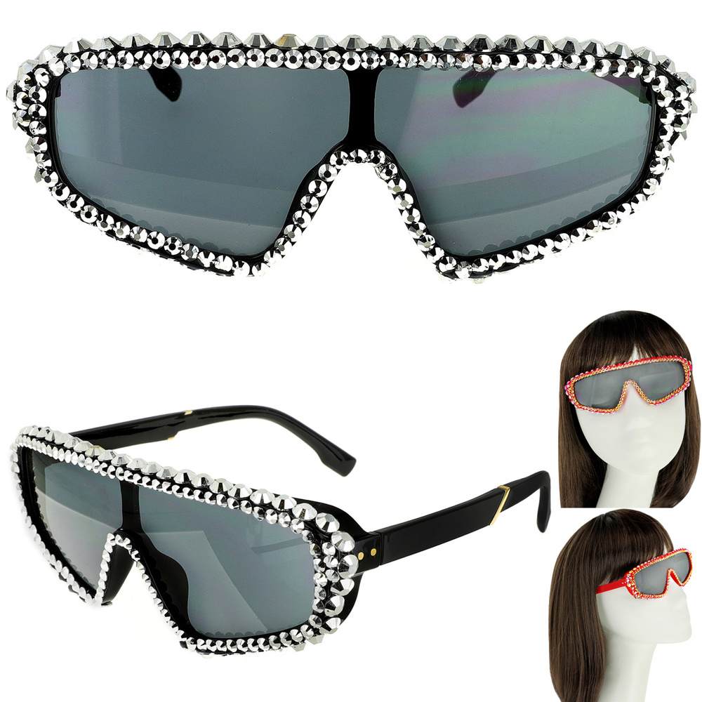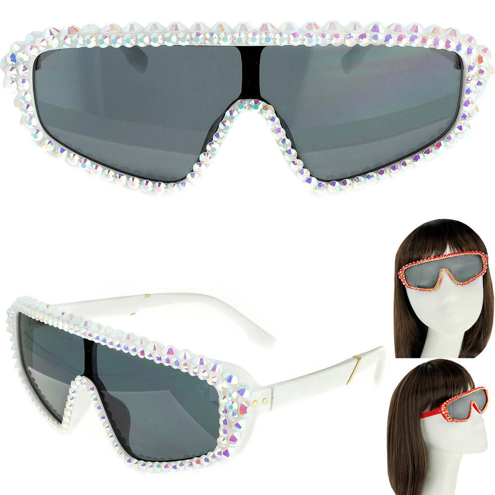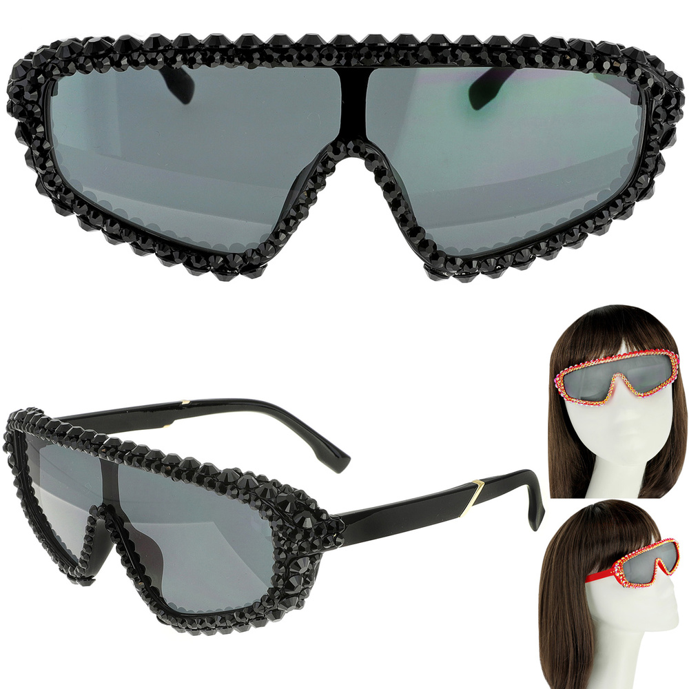 SPARKLING RHINESTONE SHIELD STYLE SUNGLASSES