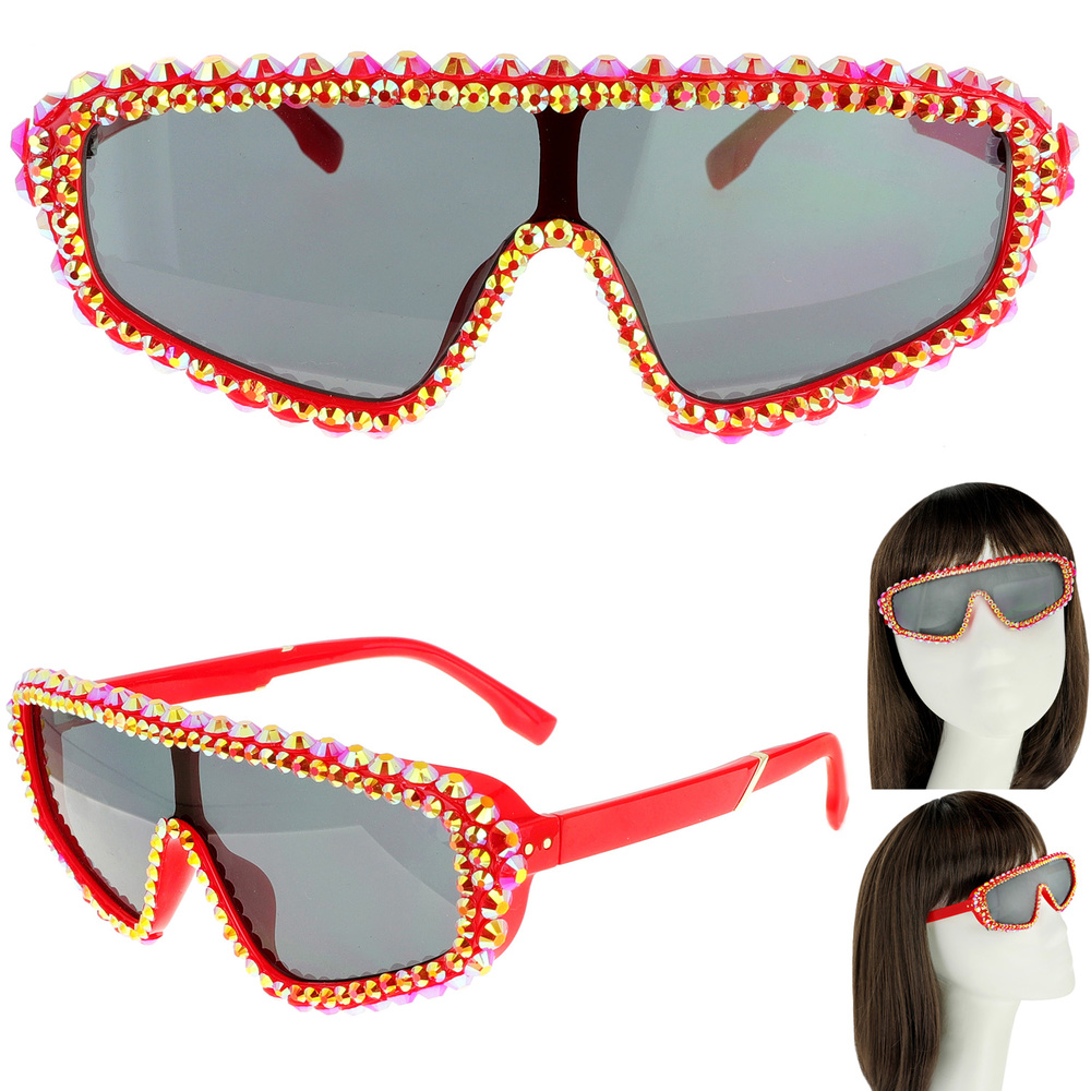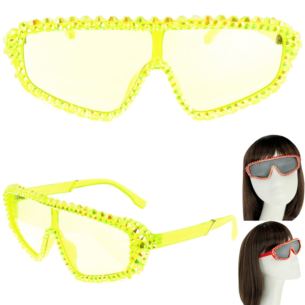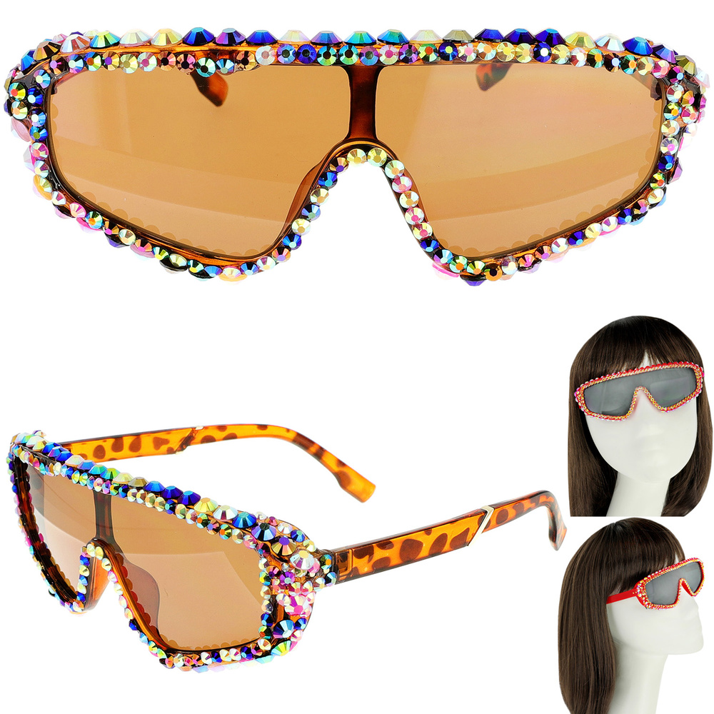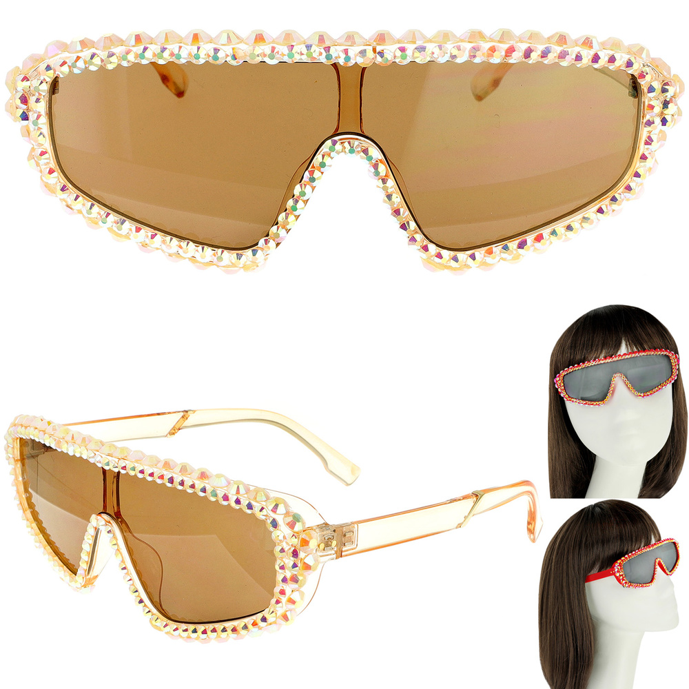 SPARKLING RHINESTONE SHIELD STYLE SUNGLASSES