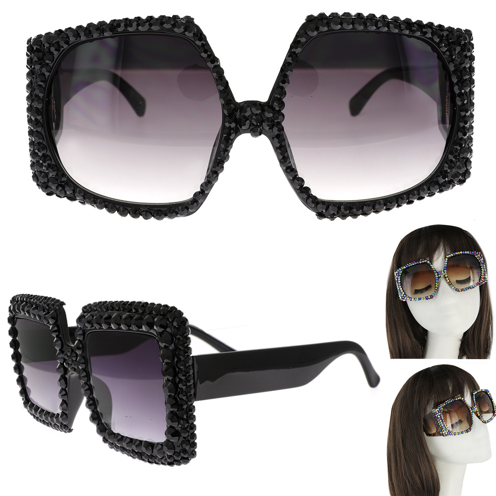 Statement Oversized Square Frame Crystal Rhinestone Jeweled Sunglasses