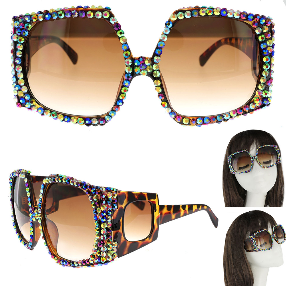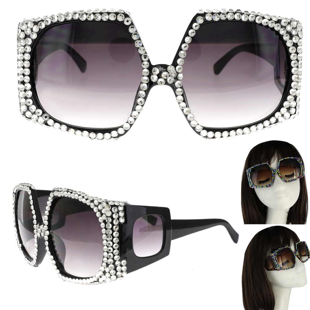 Statement Oversized Square Frame Crystal Rhinestone Jeweled Sunglasses