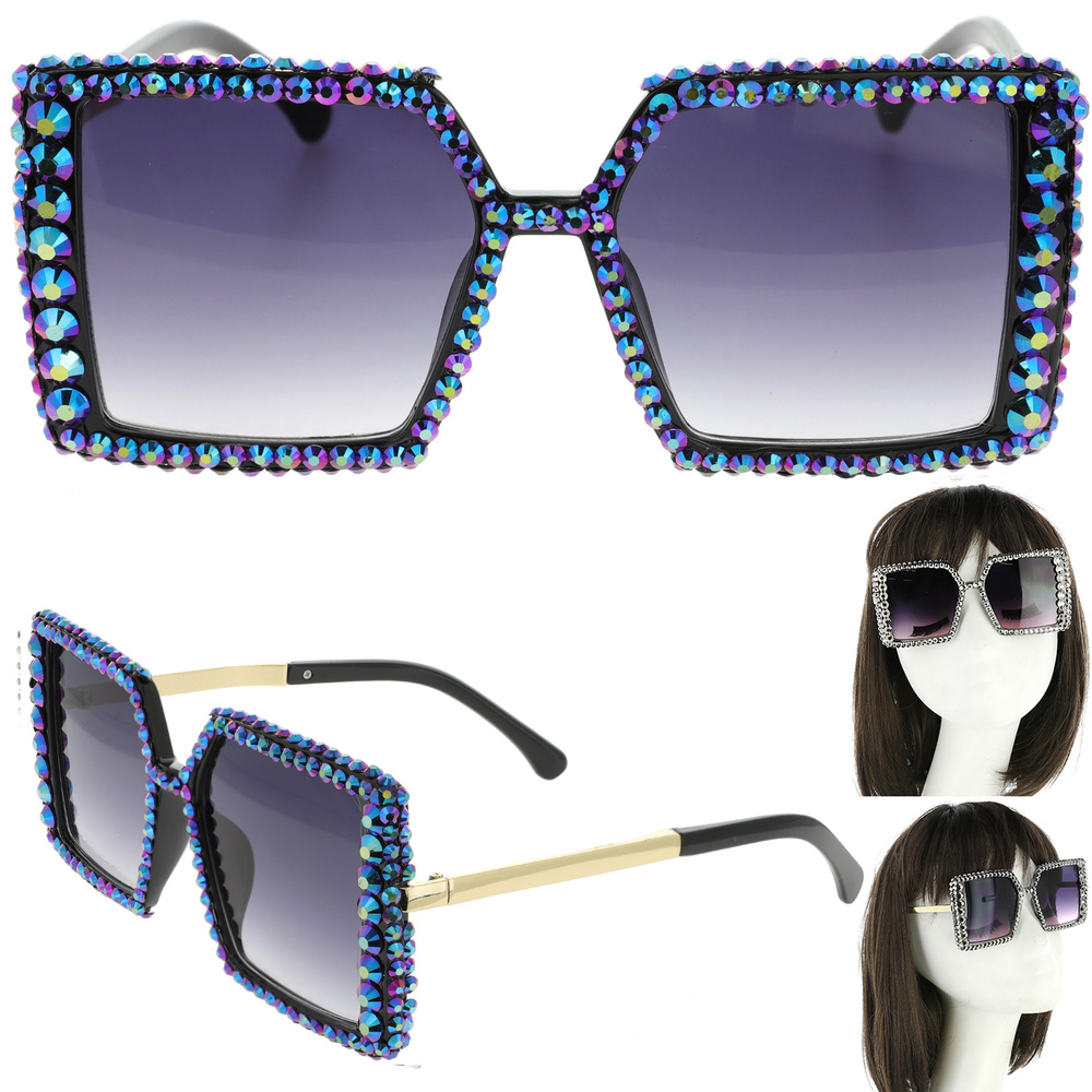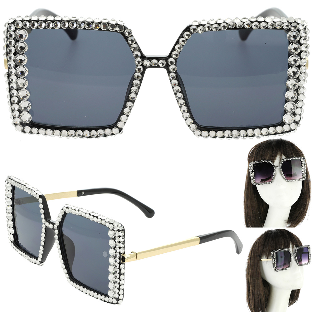 Rhinestone Statement Oversized Square Frame Jeweled Sunglasses