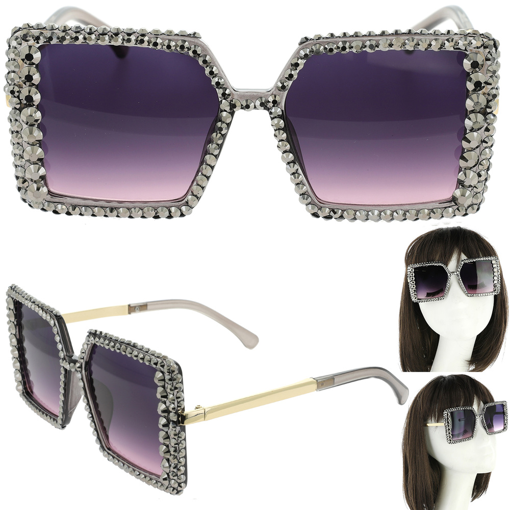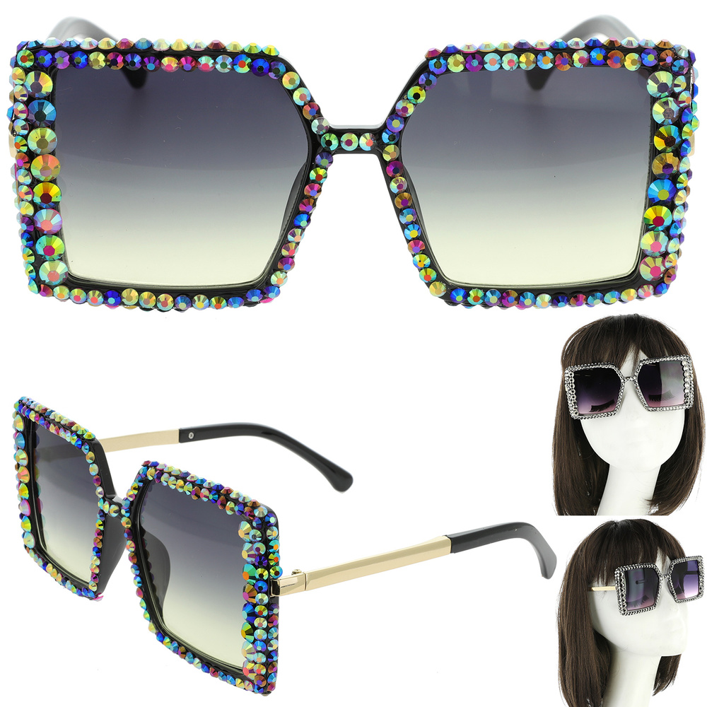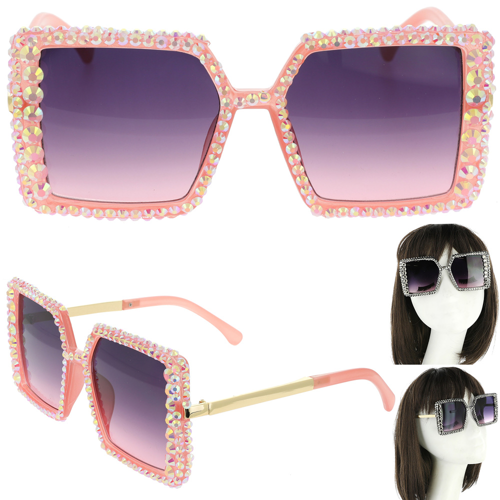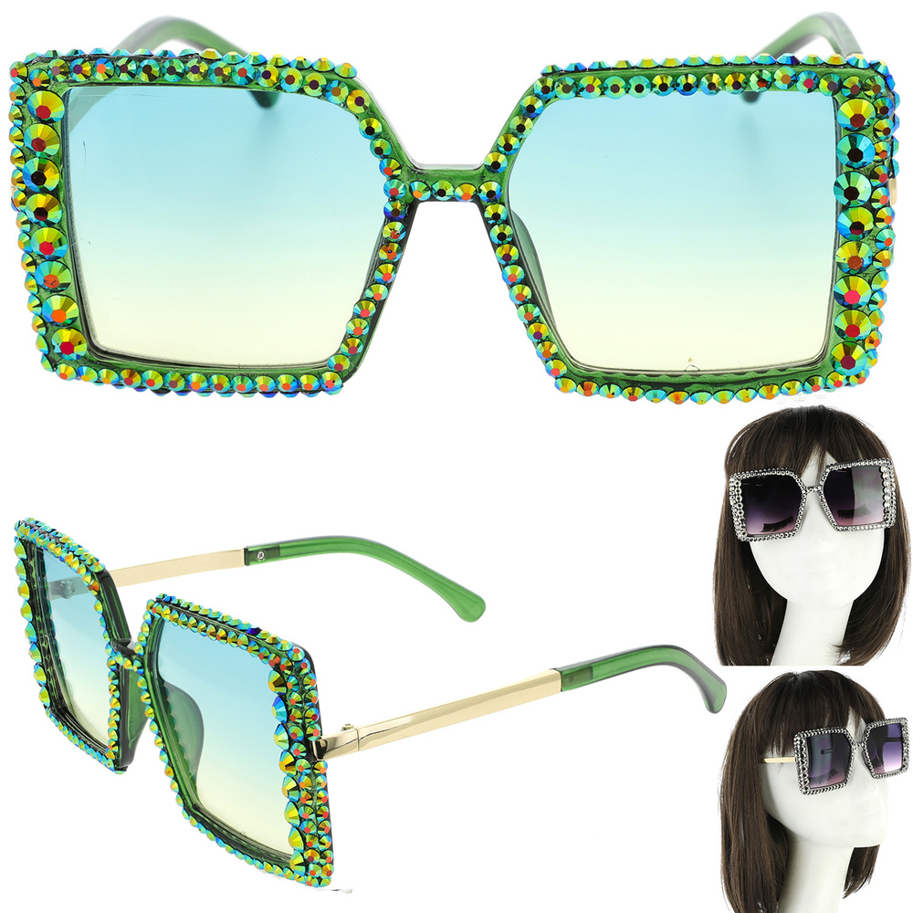 RHINESTONE STATEMENT OVERSIZED SQUARE FRAME JEWELED SUNGLASSES