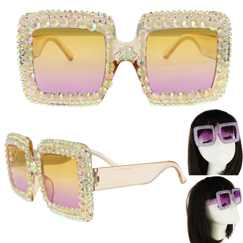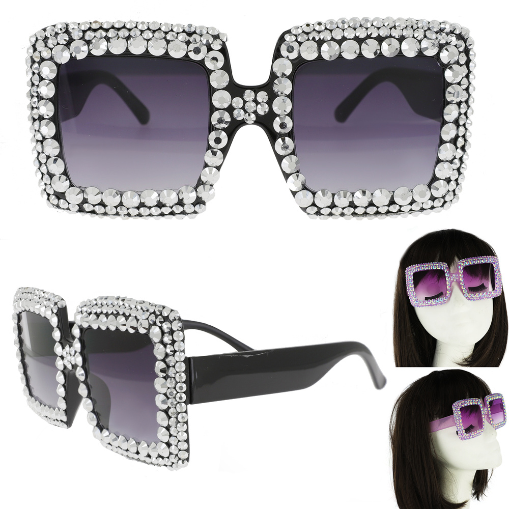 Statement Oversized Square Frame Crystal Rhinestone Jeweled Sunglasses