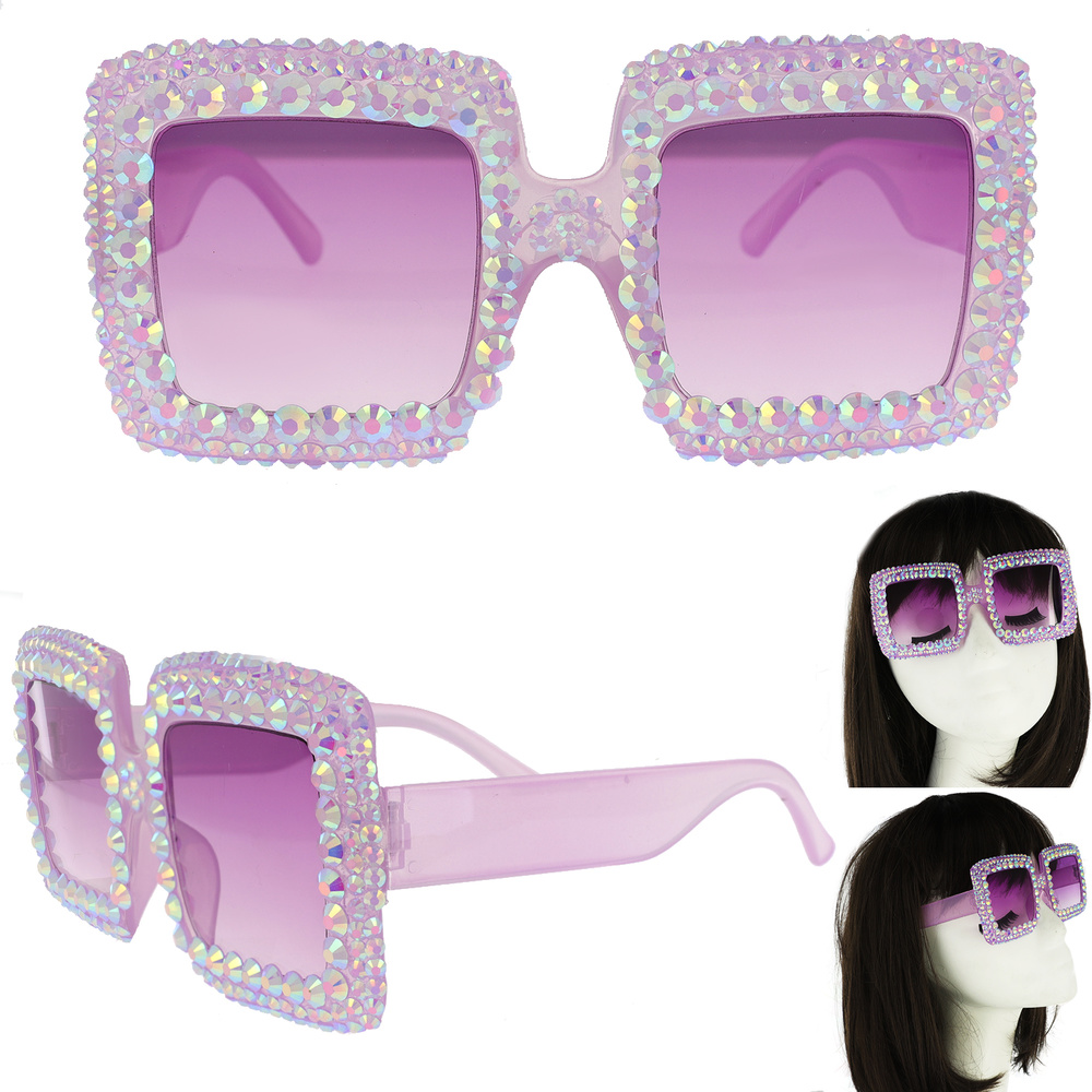 STATEMENT OVERSIZED SQUARE FRAME CRYSTAL RHINESTONE JEWELED SUNGLASSES