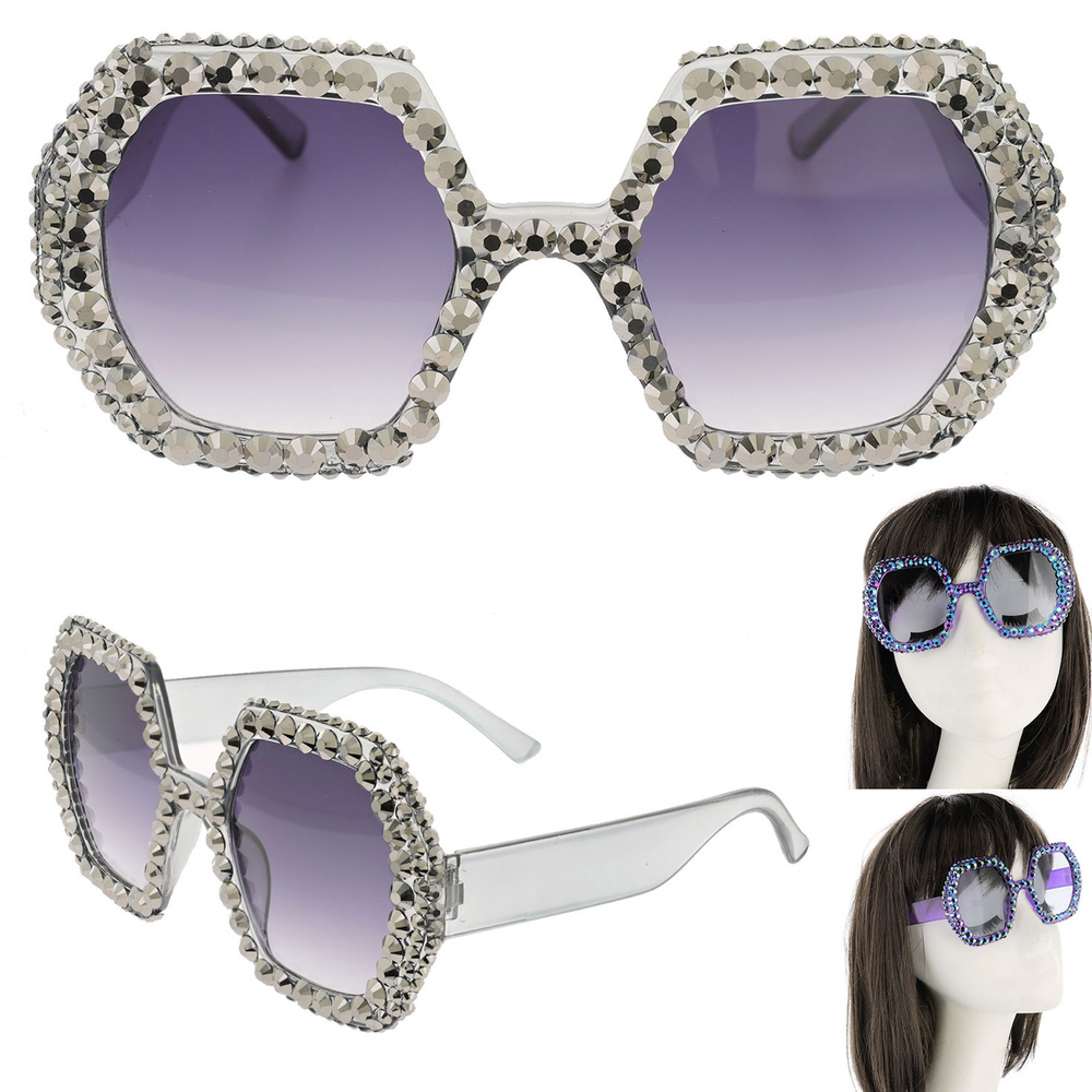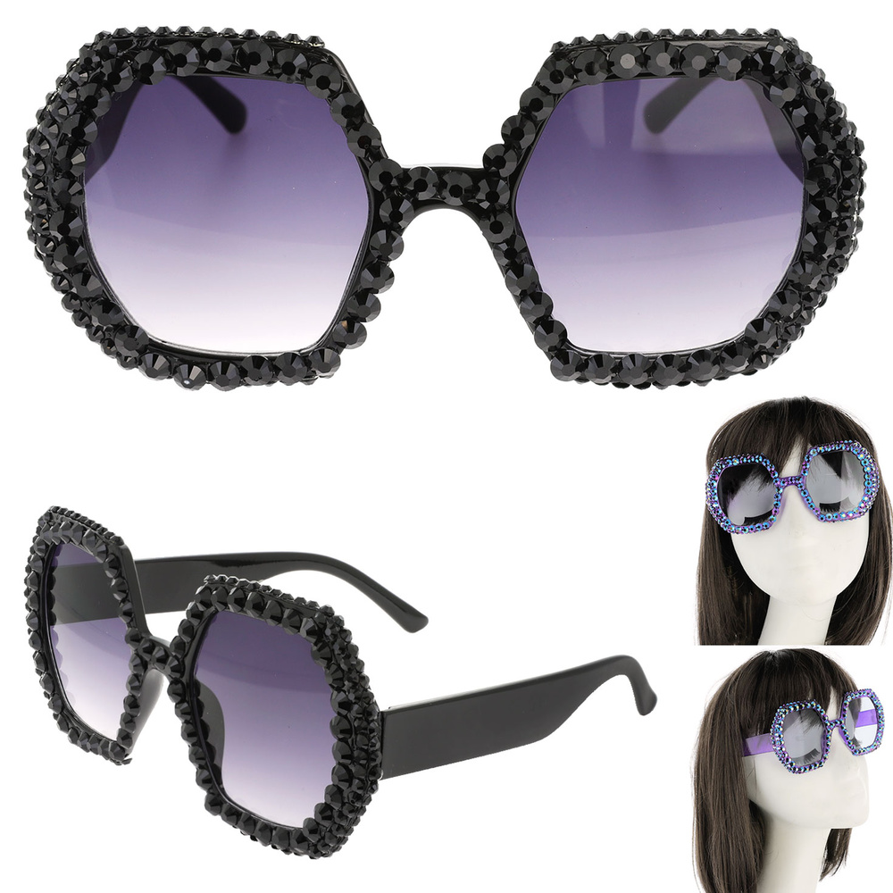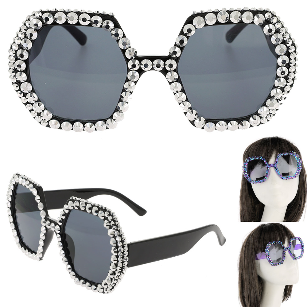 RHINESTONE STATEMENT OVERSIZED GEOMETRIC HEXAGON JEWELED SUNGLASSES