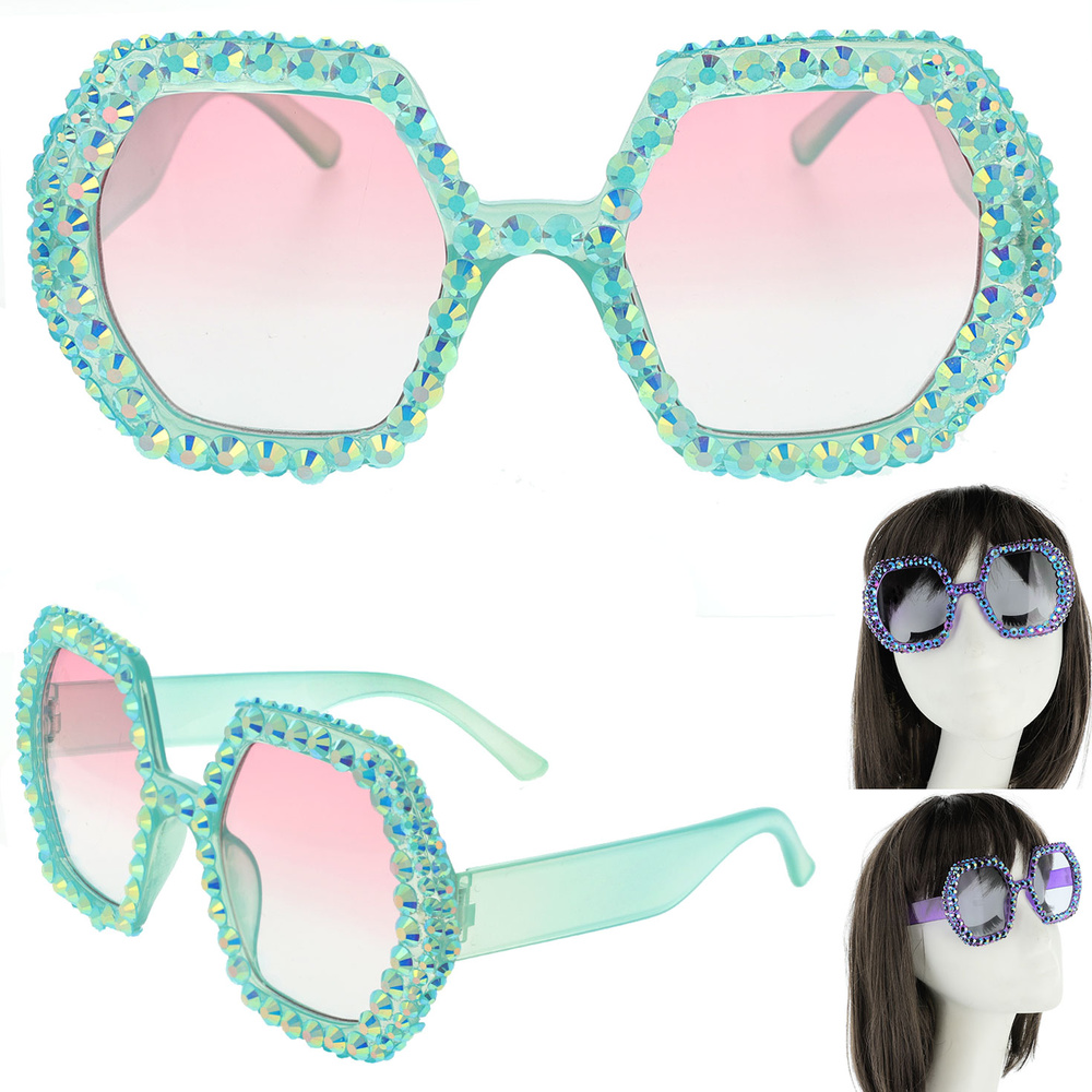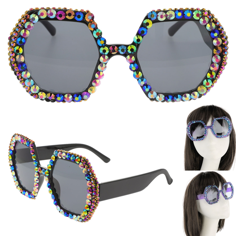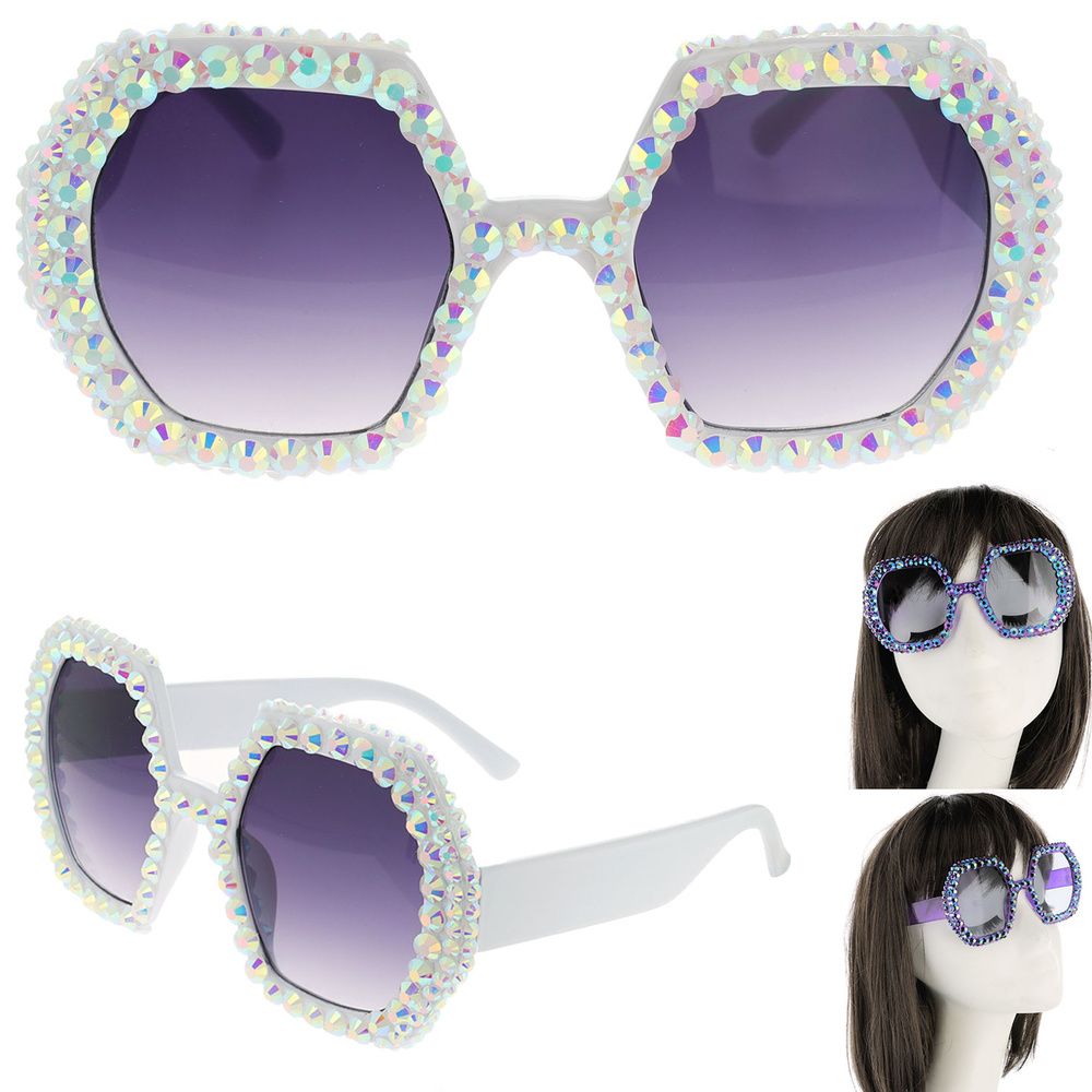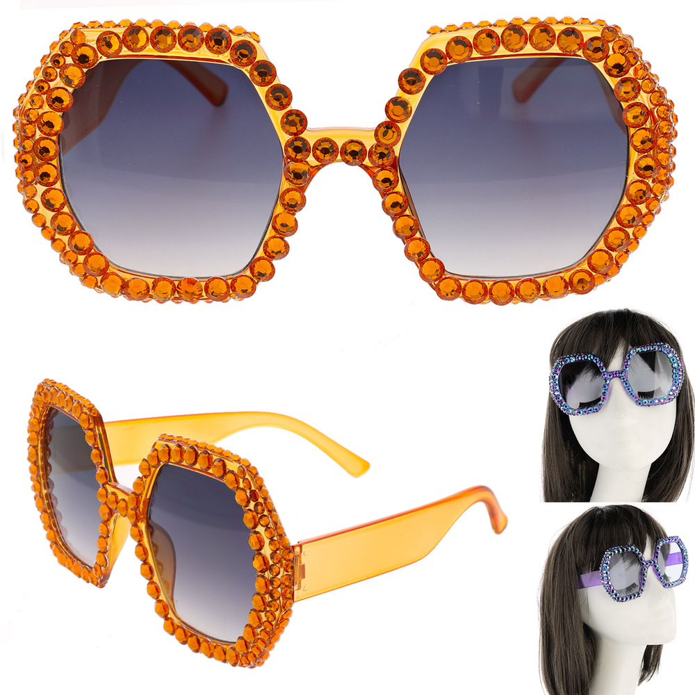 RHINESTONE STATEMENT OVERSIZED GEOMETRIC HEXAGON JEWELED SUNGLASSES
