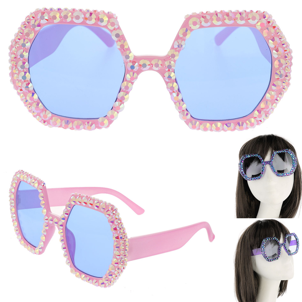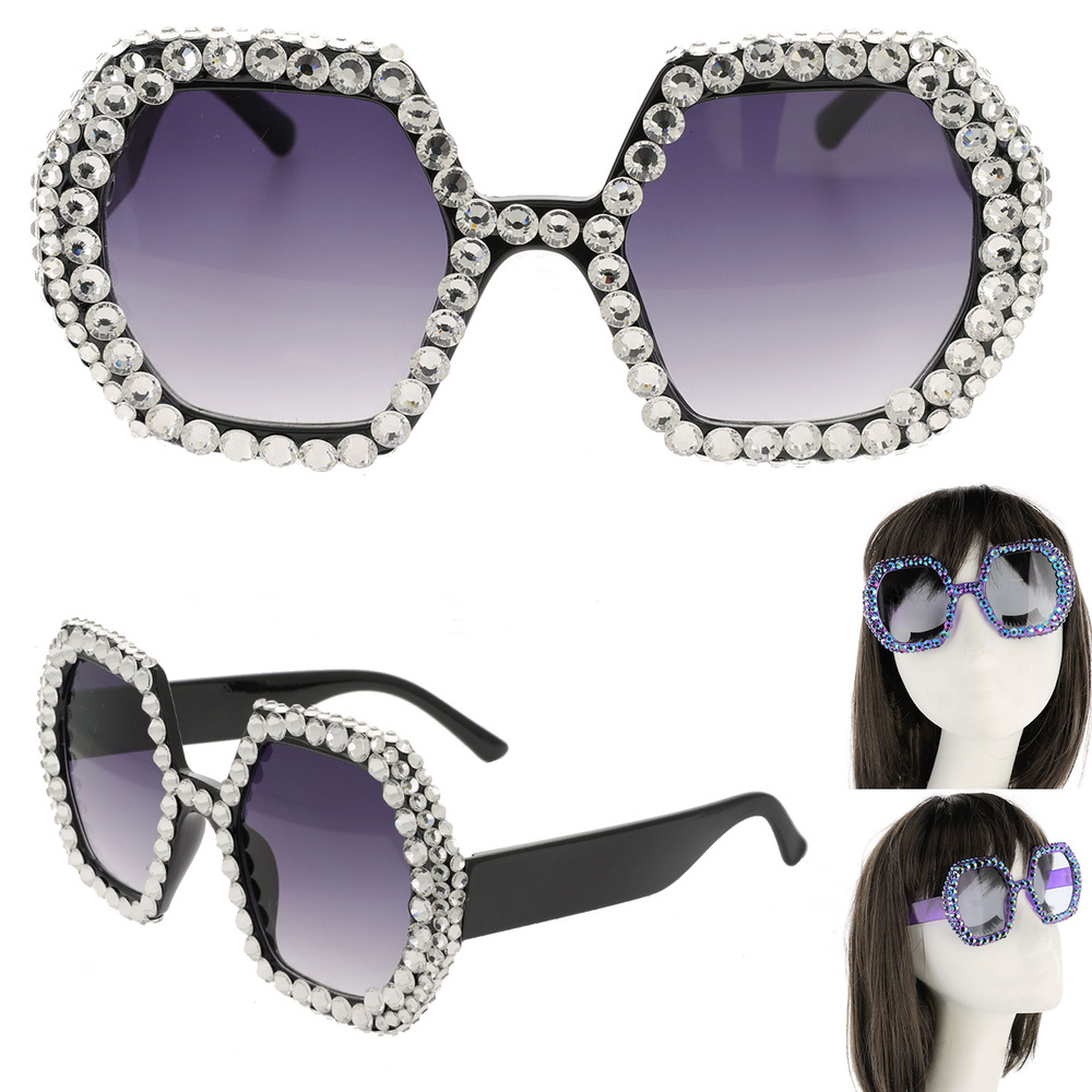 Rhinestone Statement Oversized Geometric Hexagon Jeweled Sunglasses