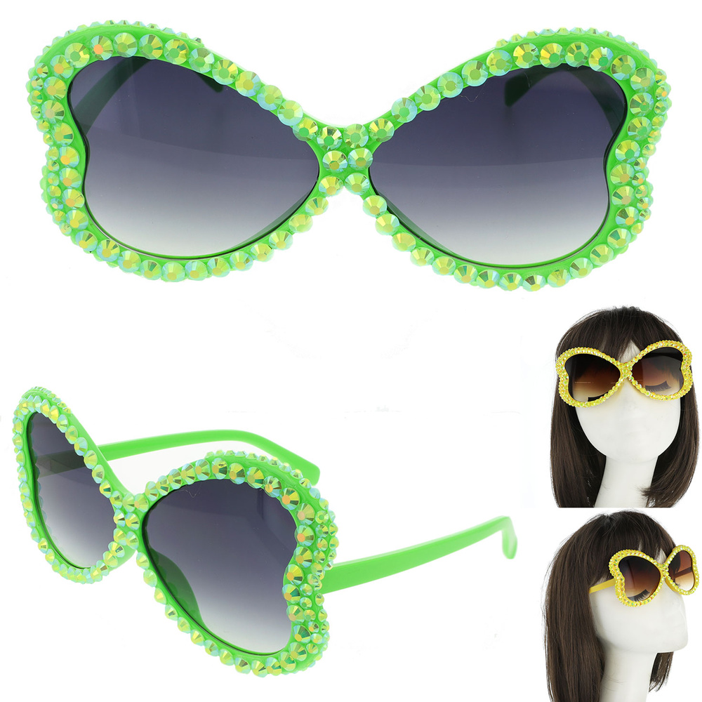 RHINESTONE STATEMENT OVERSIZED HEART SHAPED JEWELED SUNGLASSES